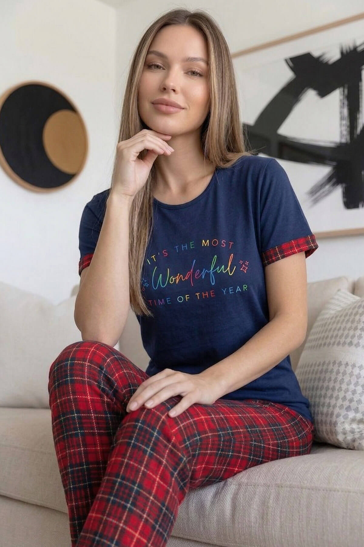| Lacivert Kırmızı Wonderful Desenli Bambu Kısa Kol Kadın Pijama Takımı | |