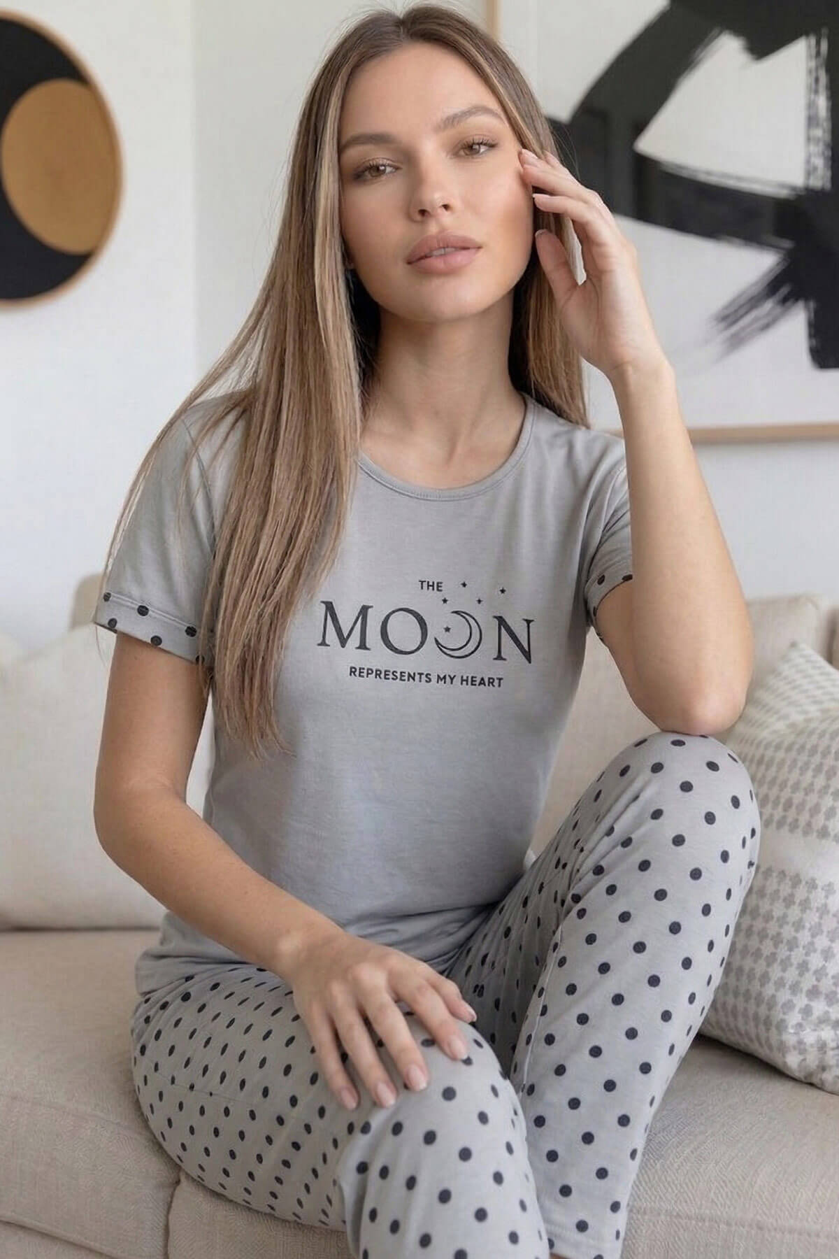 | Bej Moon Desenli Bambu Kısa Kol Kadın Pijama Takımı | |