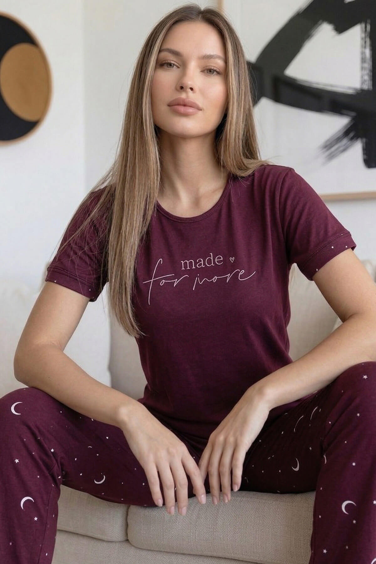 | Mürdüm More Desenli Bambu Kısa Kol Kadın Pijama Takımı | |