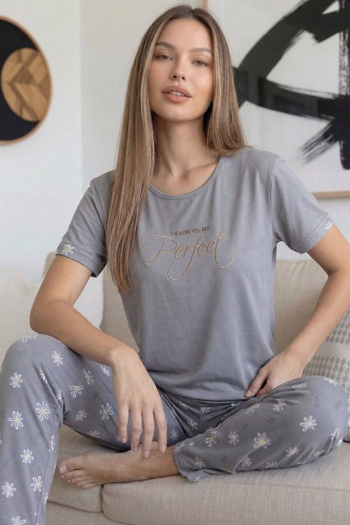 | Gri Perfect Desenli Bambu Kısa Kol Kadın Pijama Takımı | |