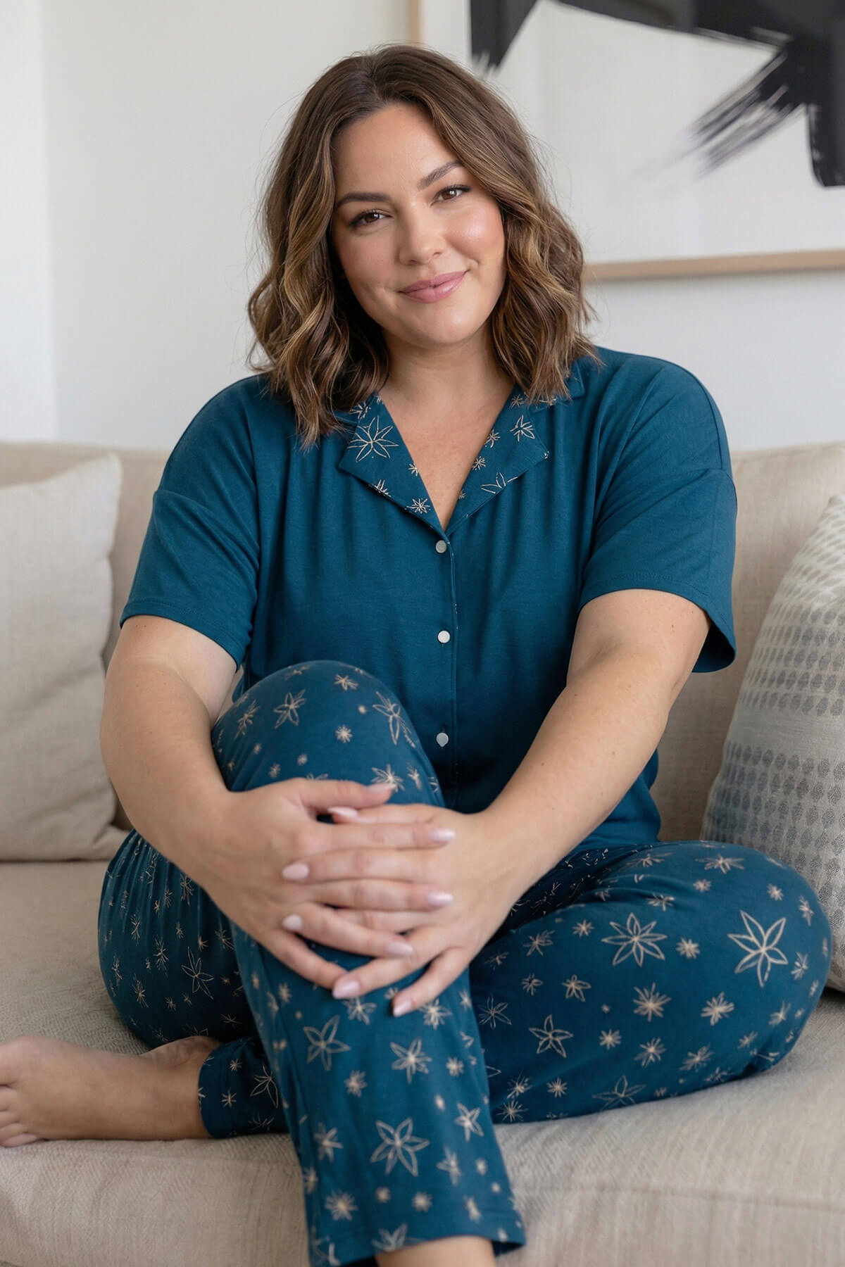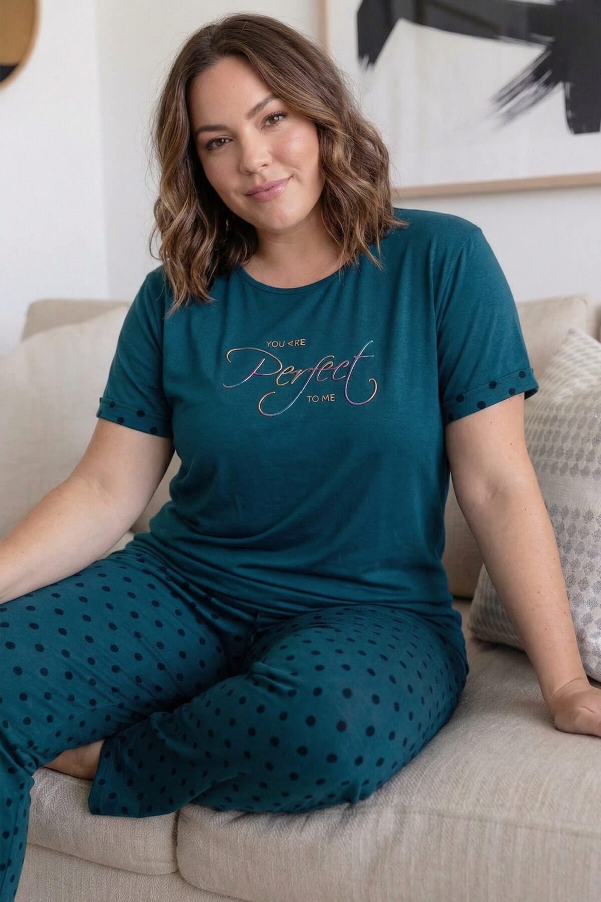 | Petrol Perfect Desenli Büyük Beden Battal Bambu Kısa Kol Kadın Pijama Takımı | |