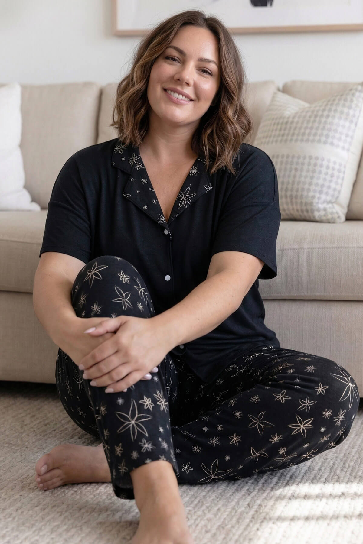 | Siyah Simply Desenli Bambu Kısa Kol Kadın Pijama Takımı | |