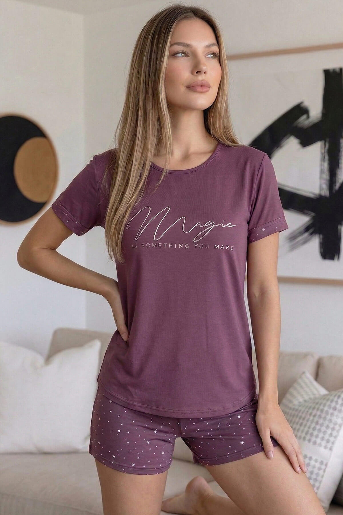 | Lila Magic Desenli Bambu Kısa Kol Şortlu Kadın Pijama Takımı | |