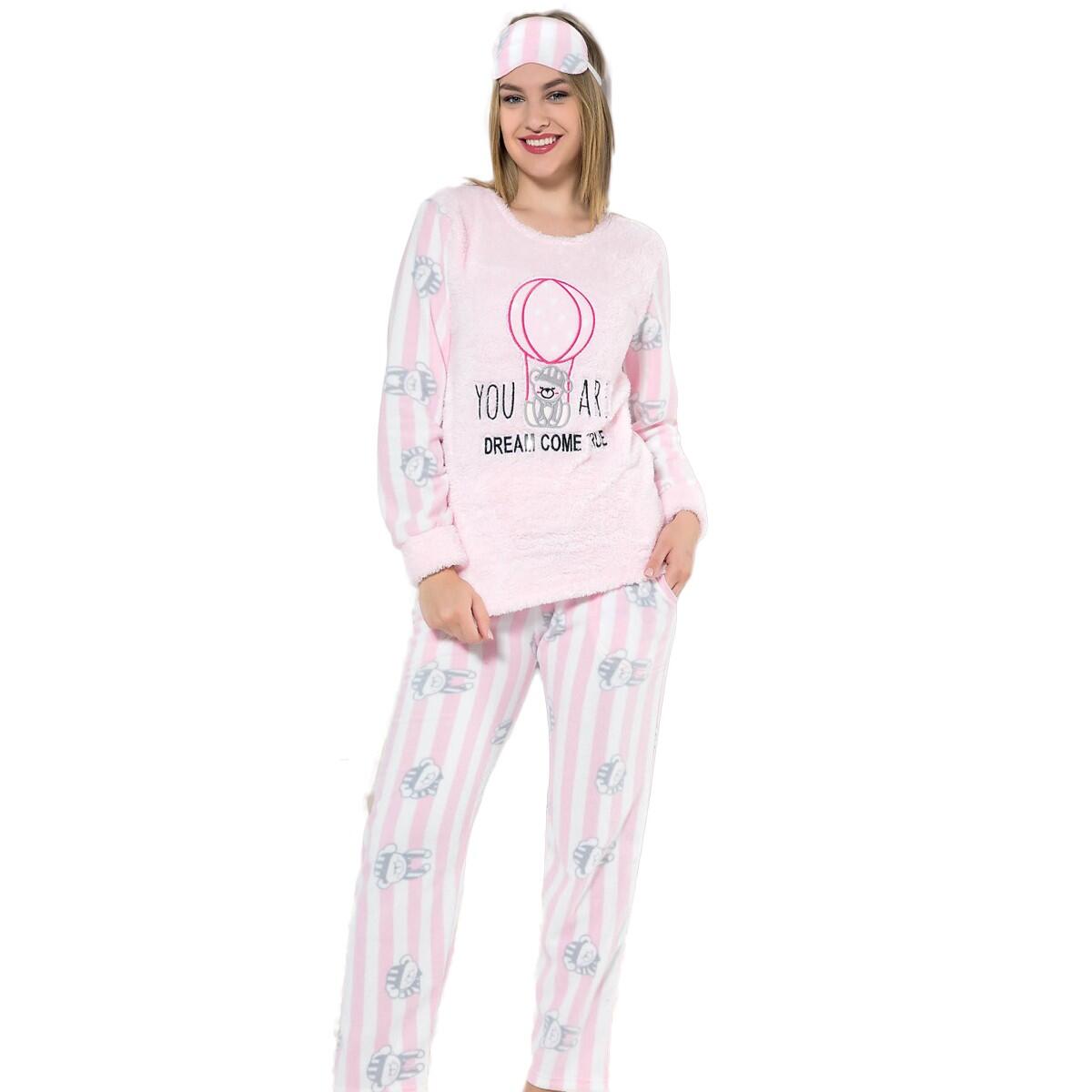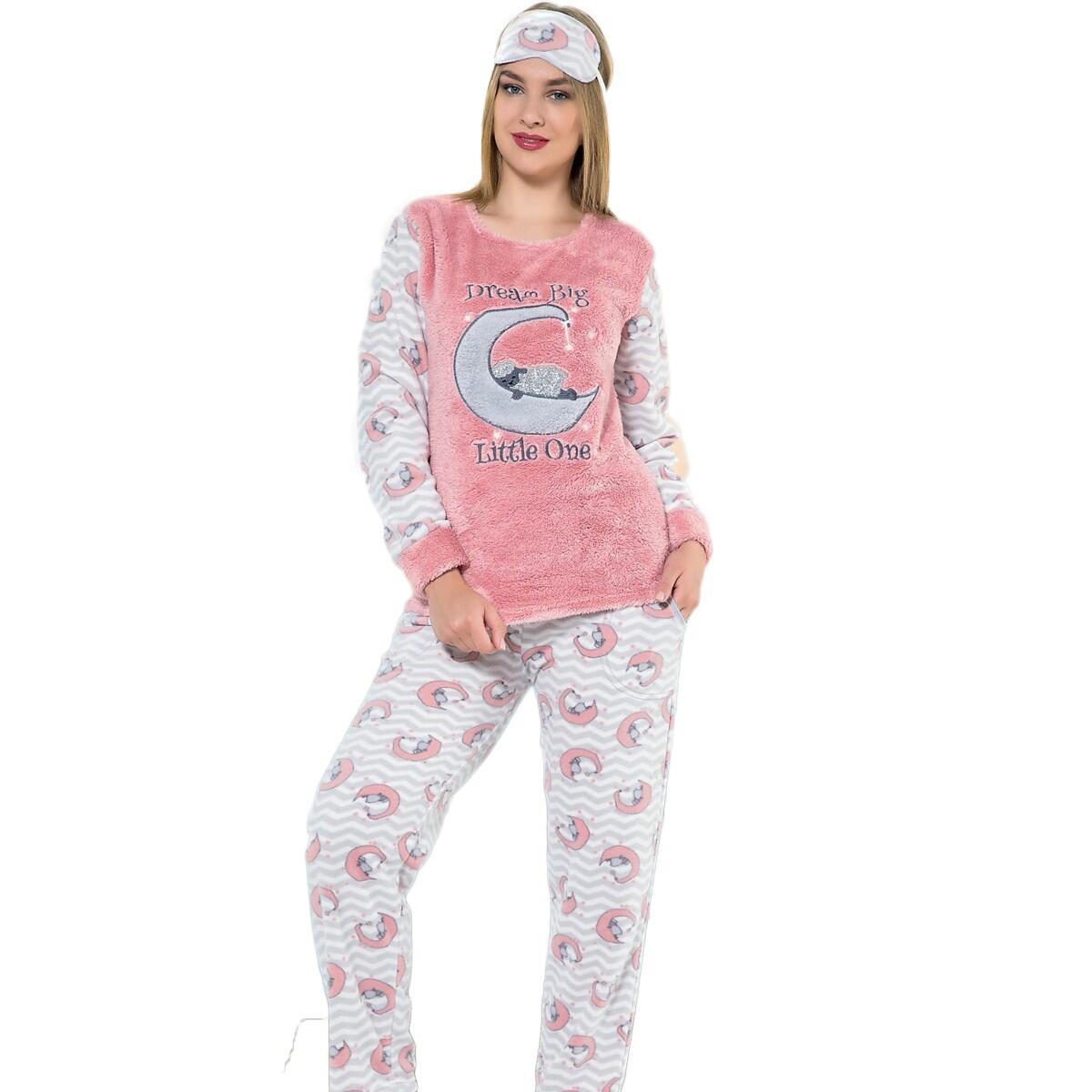 | Toz Pembe Dream Big Desenli Kadın Peluş Pijama Takımı | |