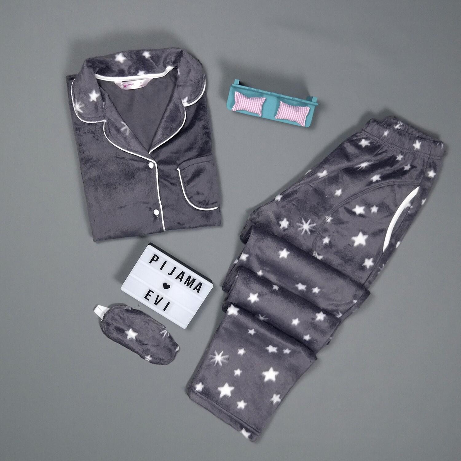 | Yıldız Desenli Kadın Önden Düğmeli Yumoş Peluş Pijama Takımı | |
