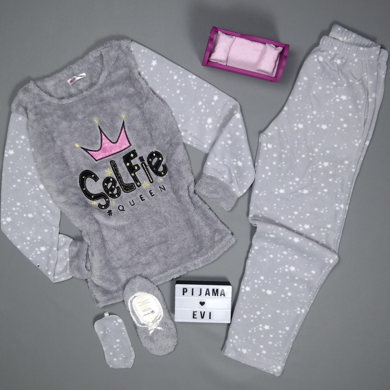 | Gri Selfie Desenli Kadın Peluş Pijama Takımı | |