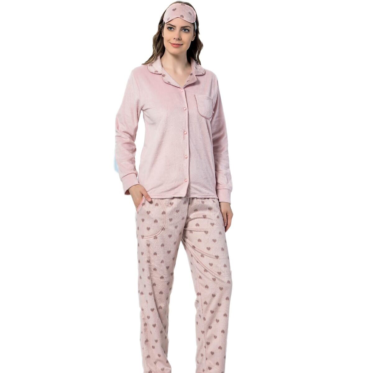| Pembe Kalp Desenli Önden Düğmeli Peluş Polar Pijama Takımı | |