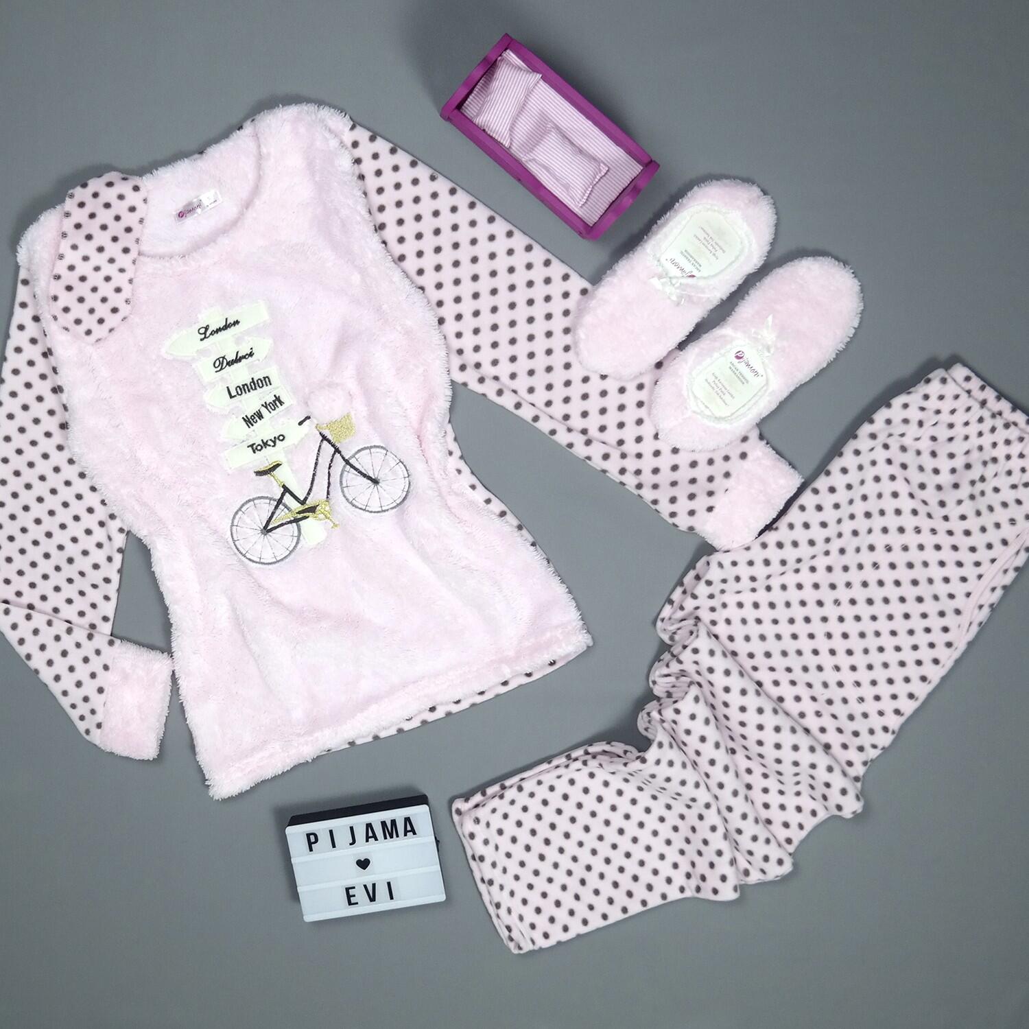 | Toz Pembe Bisiklet Desenli Kadın Peluş Pijama Takımı | |