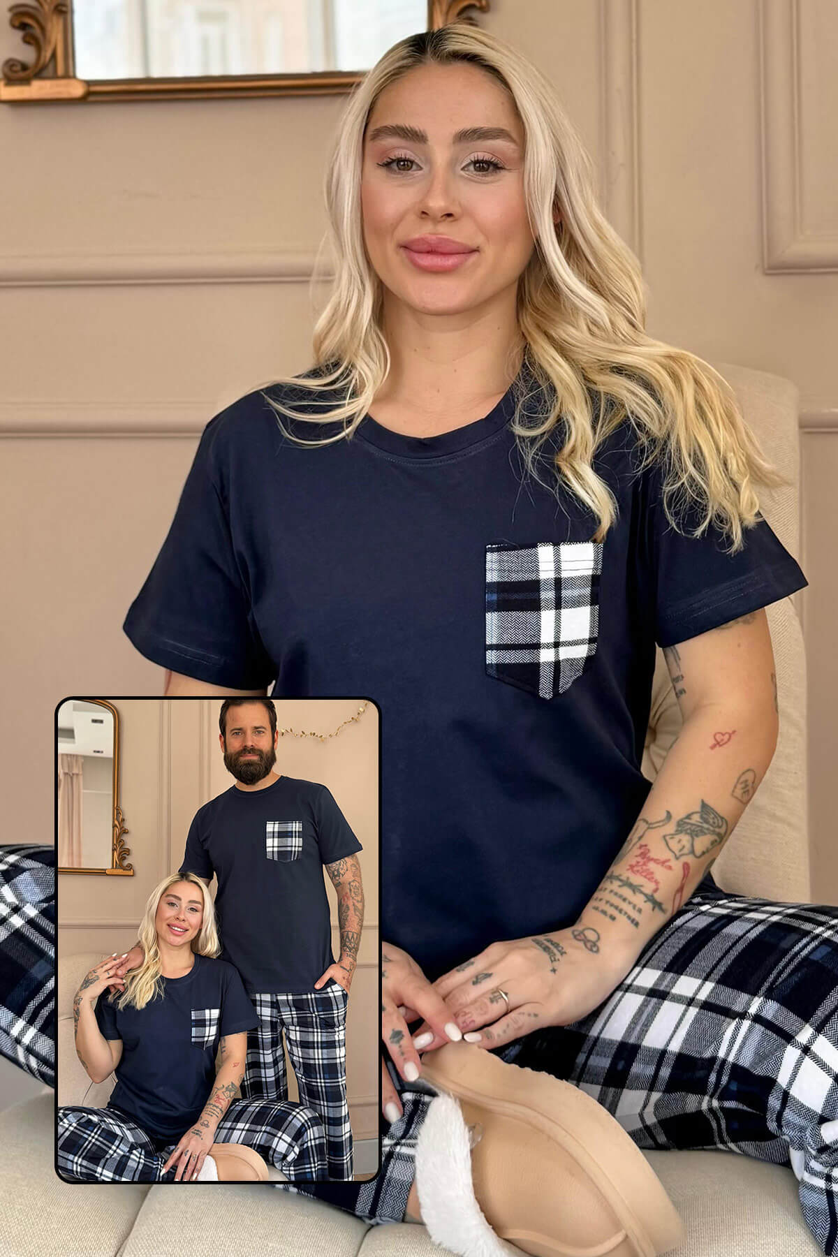 | Lacivert Cep Detay Kısa Kol Sevgili Aile Pijaması - Kadın Takımı | |