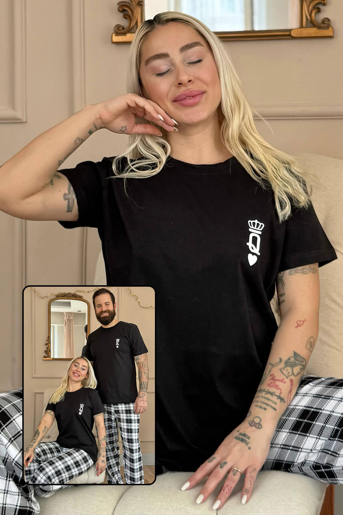 | Queen Kısa Kol Sevgili Aile Pijaması - Kadın Takımı | |