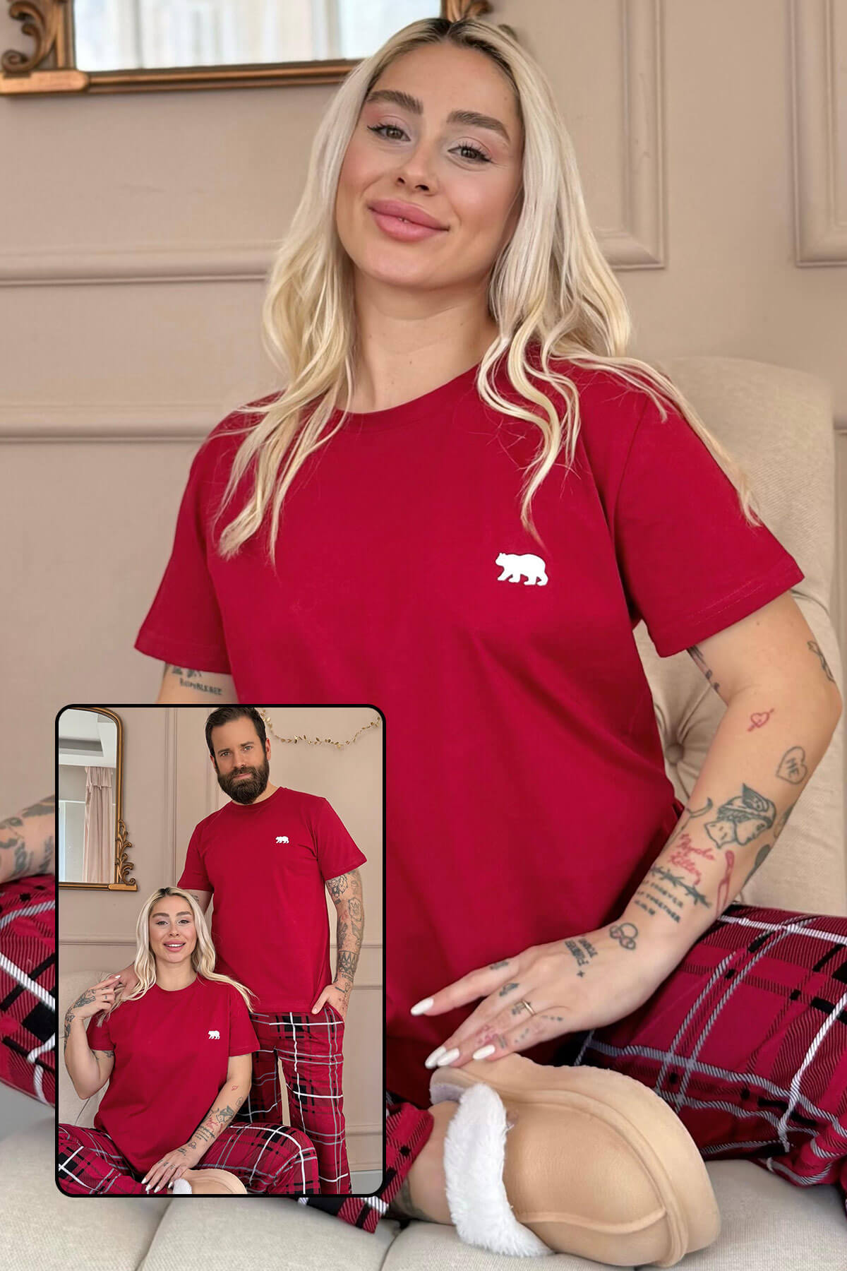 | Bordo Bear Kısa Kol Sevgili Aile Pijaması - Kadın Takımı | |