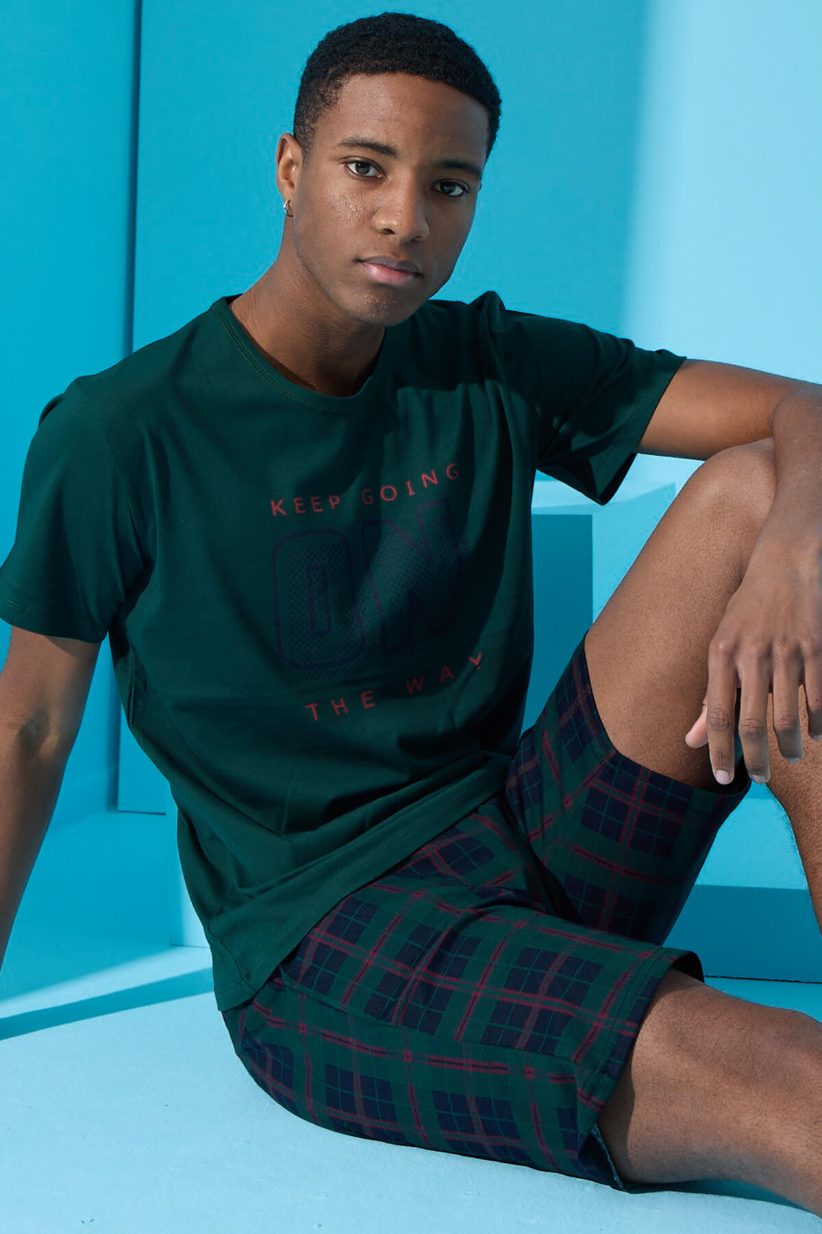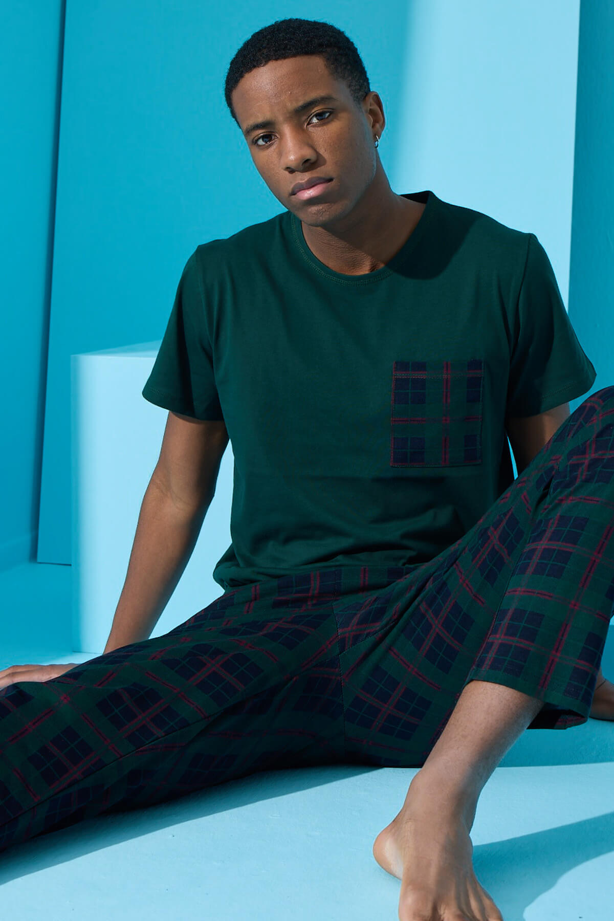 | Yeşil Four Squares Ekose Desenli Kısa Kollu Erkek Pijama Takımı | |
