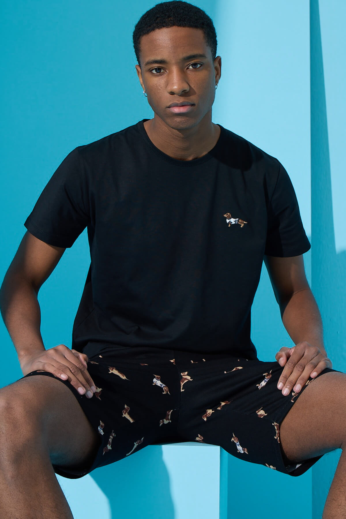 | Siyah Dakhund Baskılı Şortlu Erkek Pijama Takımı | |