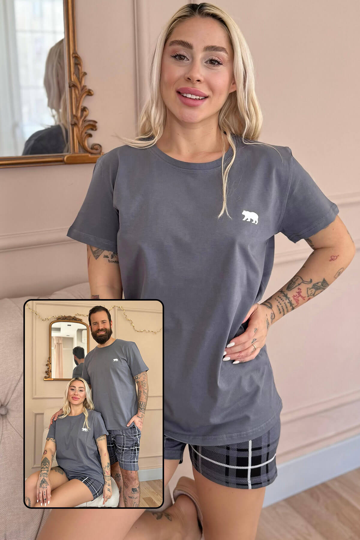 | Füme Bear Şortlu Sevgili Aile Pijaması - Erkek Takımı | |