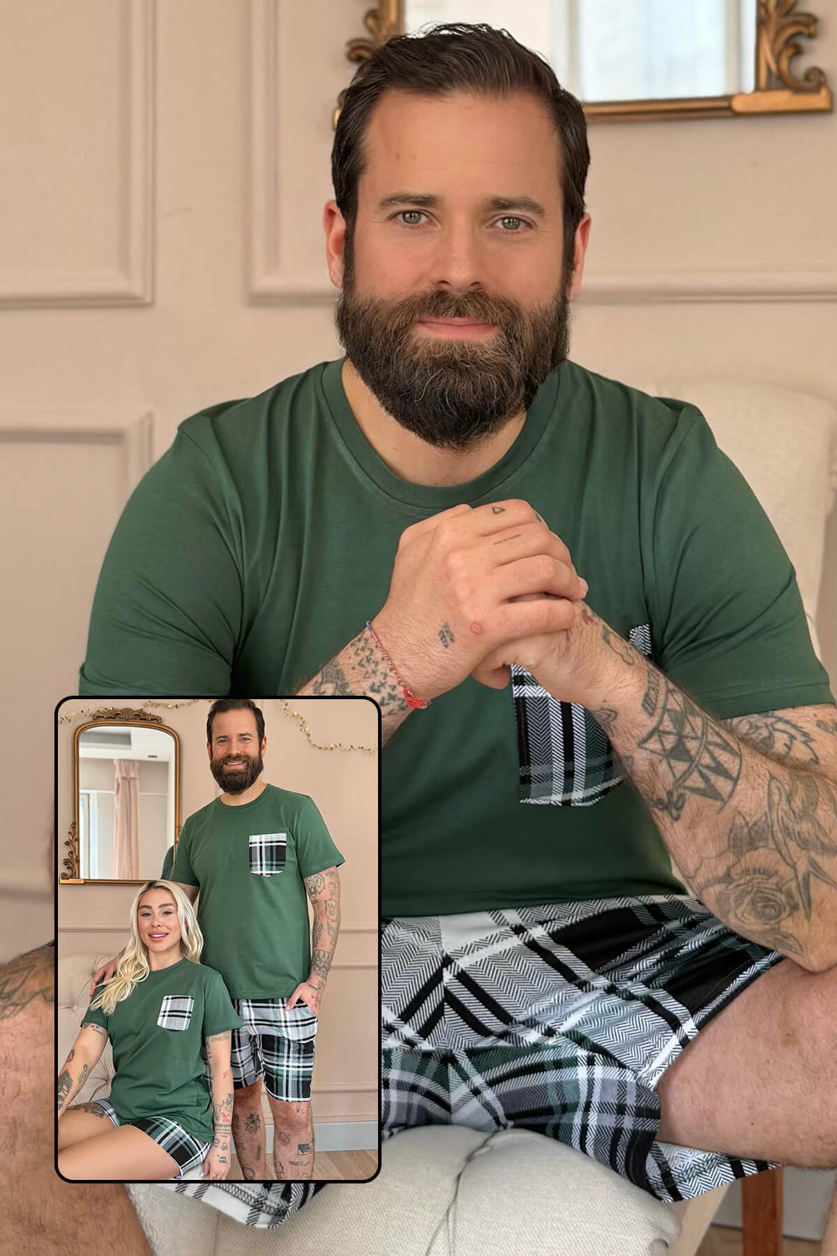 | Yeşil Mr Şortlu Sevgili Aile Pijaması - Erkek Takımı | |