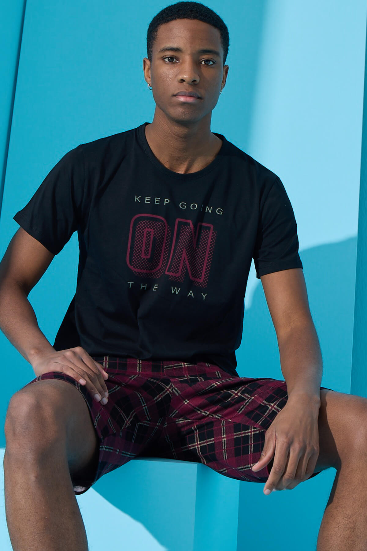 | Siyah Double Çizgi Ekose Desenli Kısa Kollu Erkek Pijama Takımı | |
