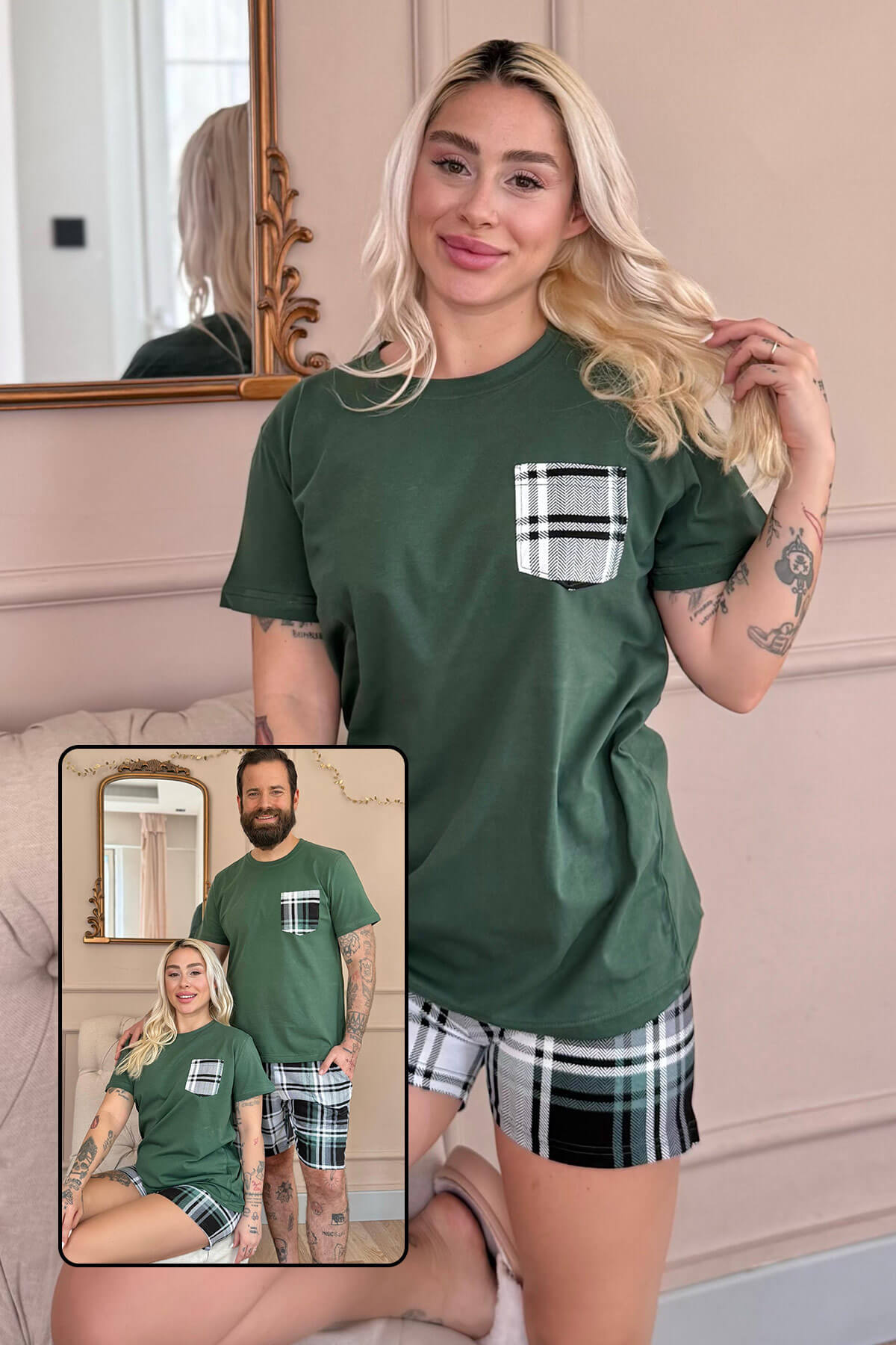 | Yeşil Mrs. Şortlu Sevgili Aile Pijaması - Kadın Takımı | |