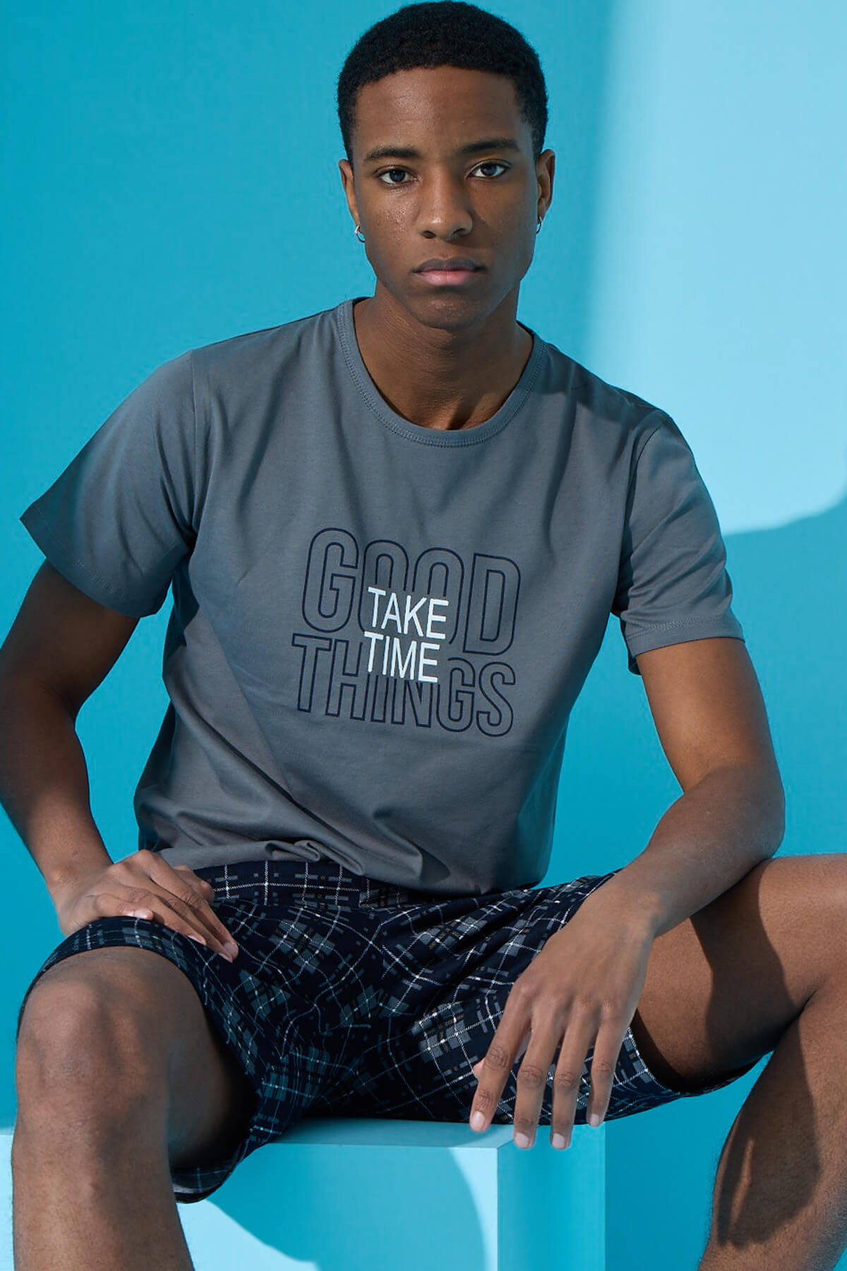 | Gri Weekend Baskılı Kısa Kollu Erkek Pijama Takımı | |