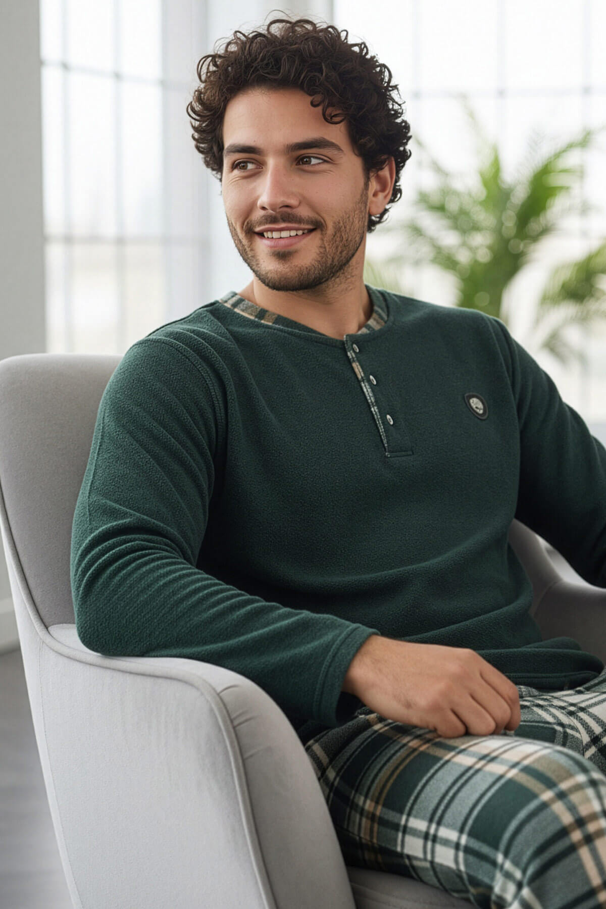 | Yeşil Ekose Desenli Polar Erkek Pijama Takımı | |