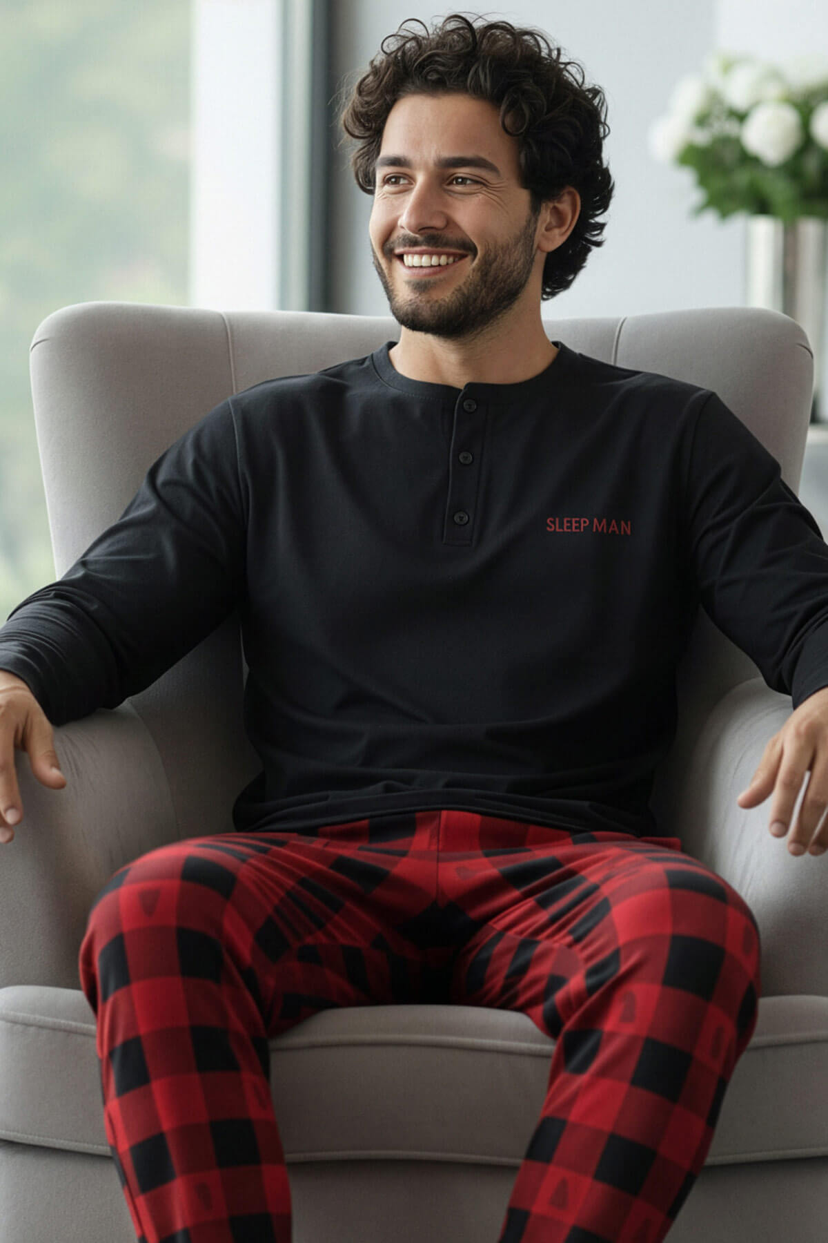| Siyah Sleep Man Desenli Stylish Erkek Uzun Kol Pijama Takımı | |