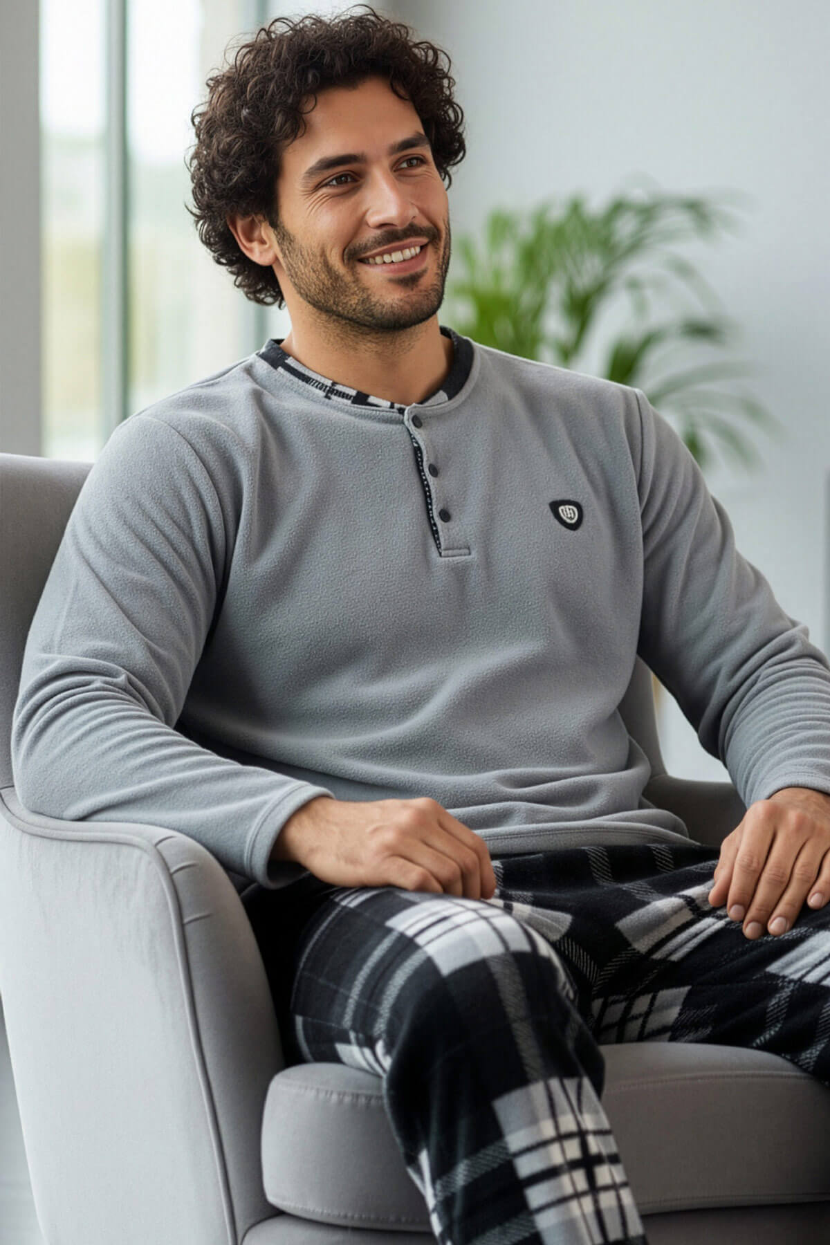 | Melanj Siyah Ekose Desenli Polar Erkek Pijama Takımı | |