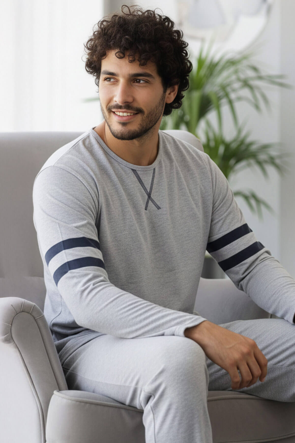 | Antrasit Line Desenli Stylish Erkek Uzun Kol Pijama Takımı | |
