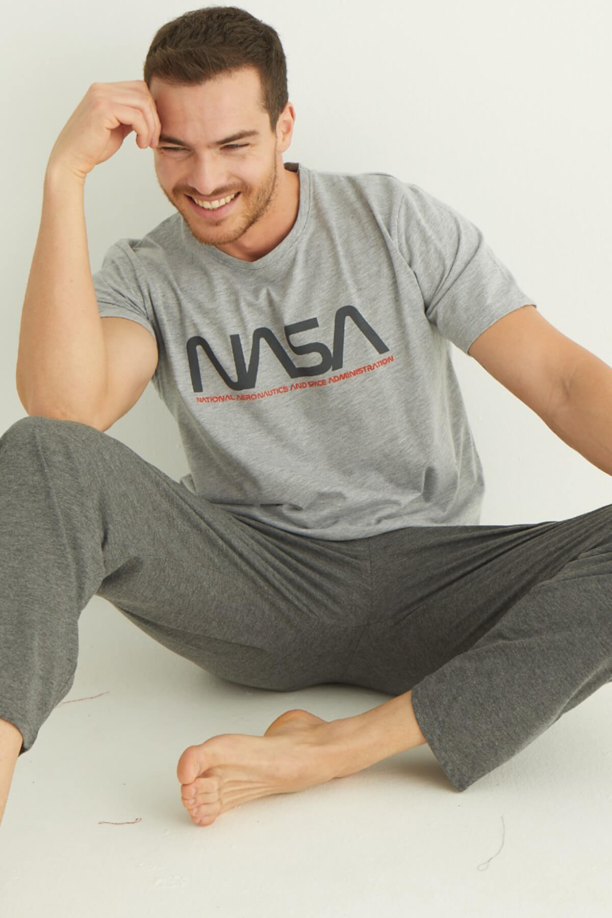 | Gri Baskılı Kısa Kollu Alt Uzun Erkek Pijama Takımı | |