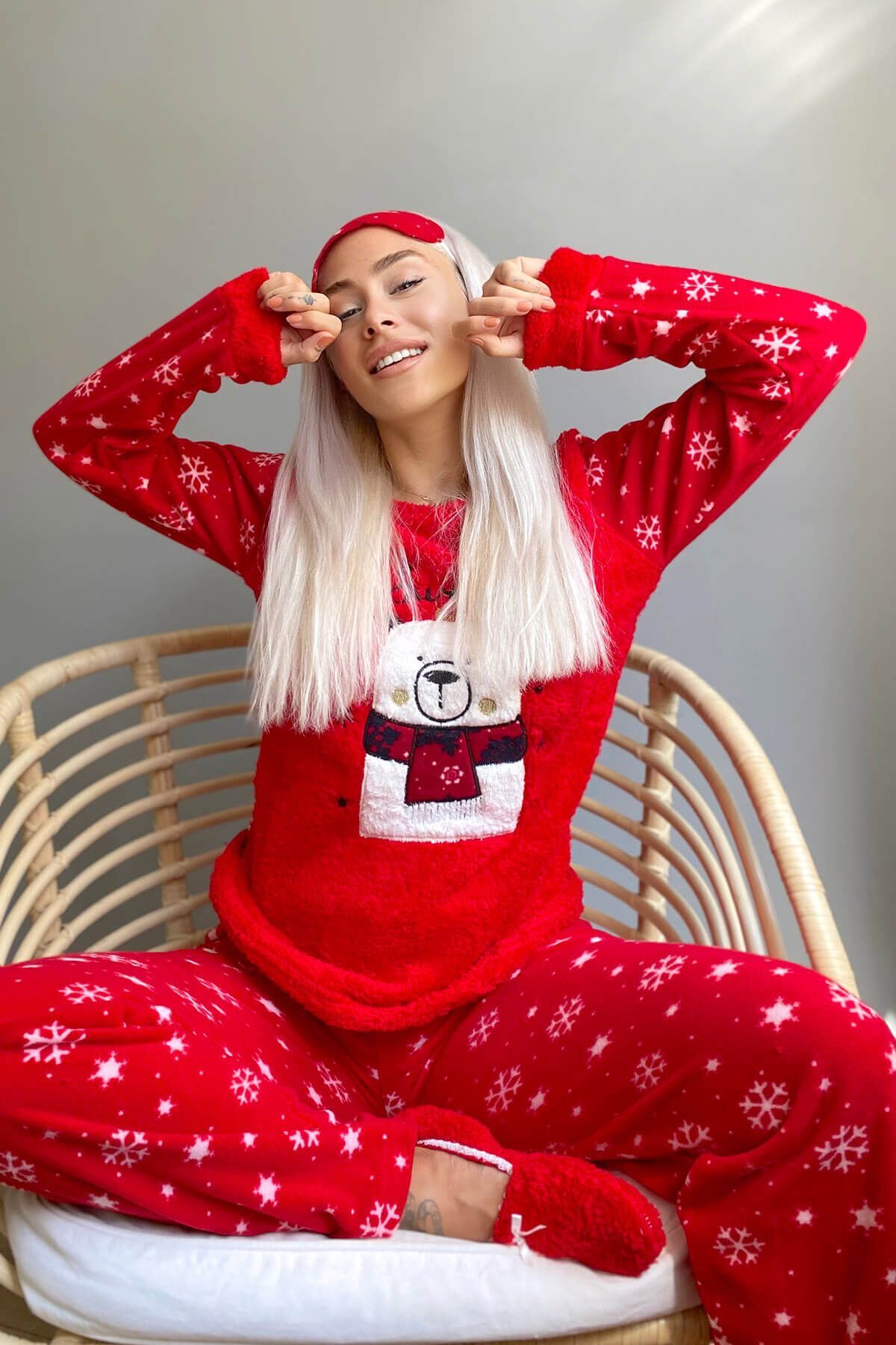 | Bear Winter Desenli Kadın Peluş Pijama Takımı | |