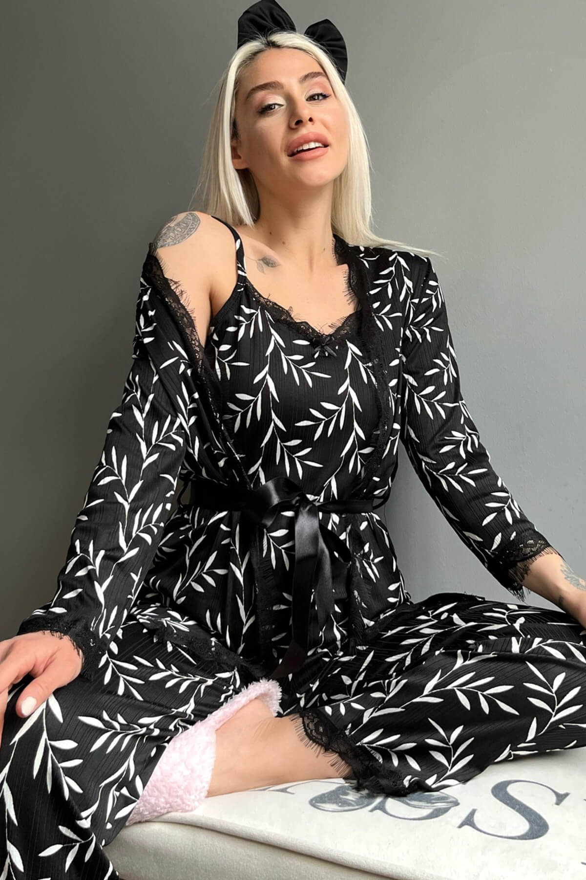 | Siyah Zeytin Dalı Desenli Sabahlıklı Pegasus Pijama Takımı | |