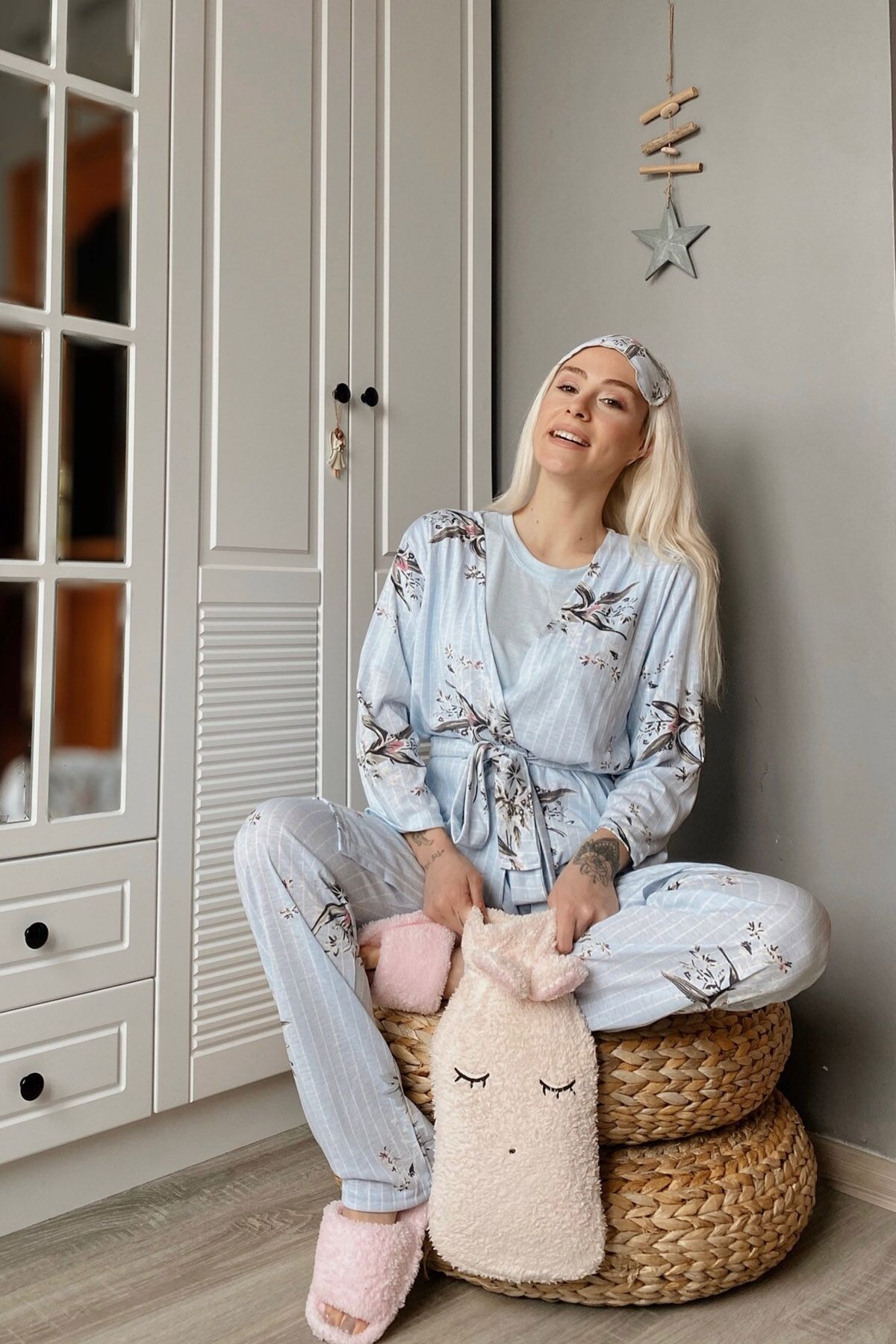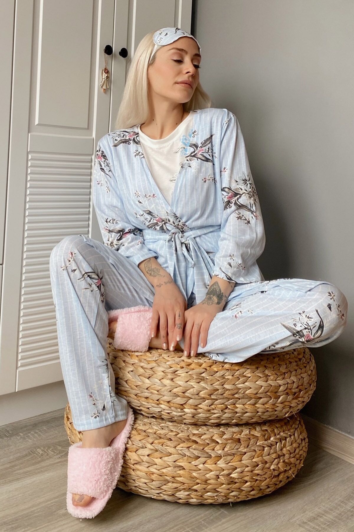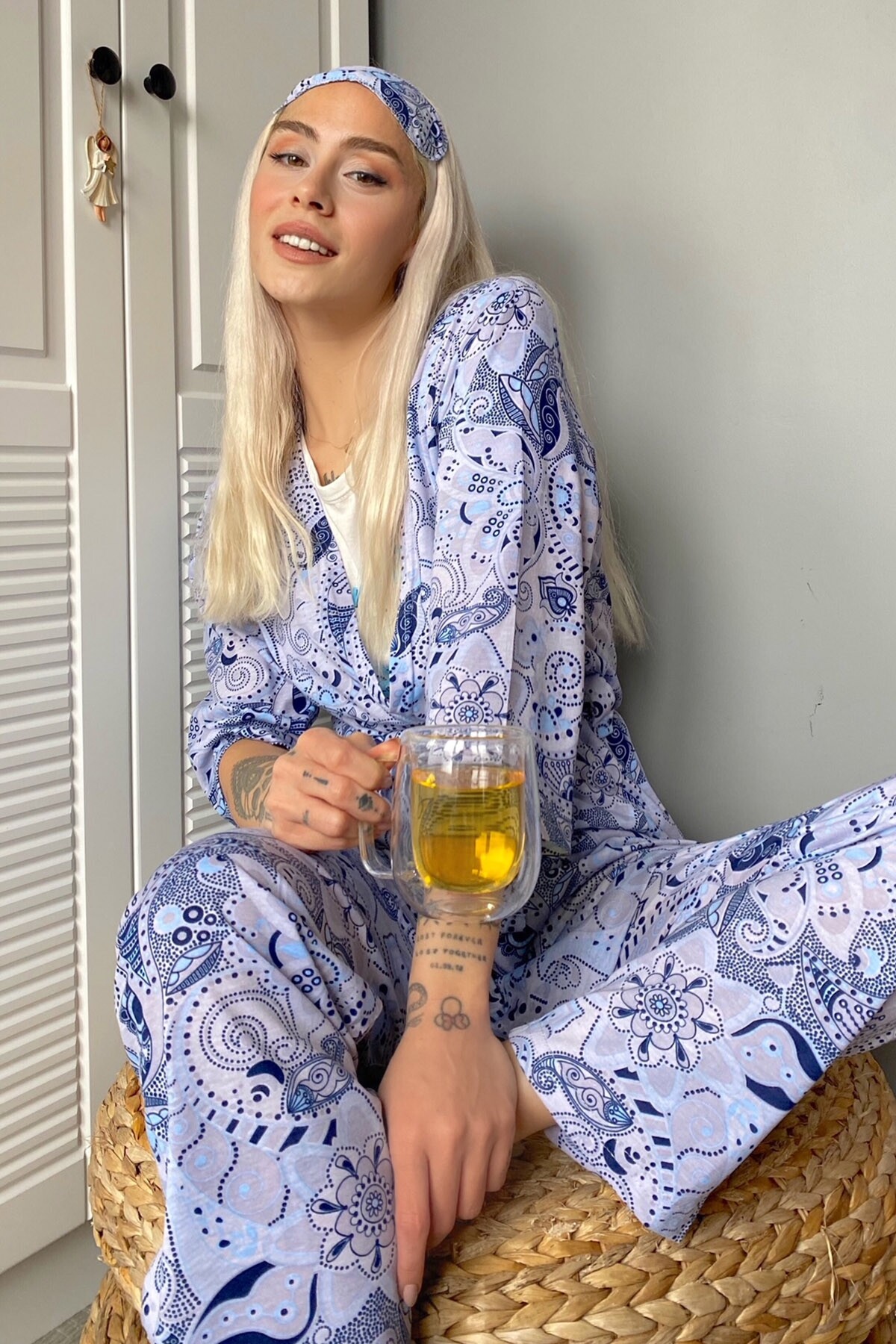 | Mavi Çiçek Baskılı Sabahlıklı Pijama Takımı | |