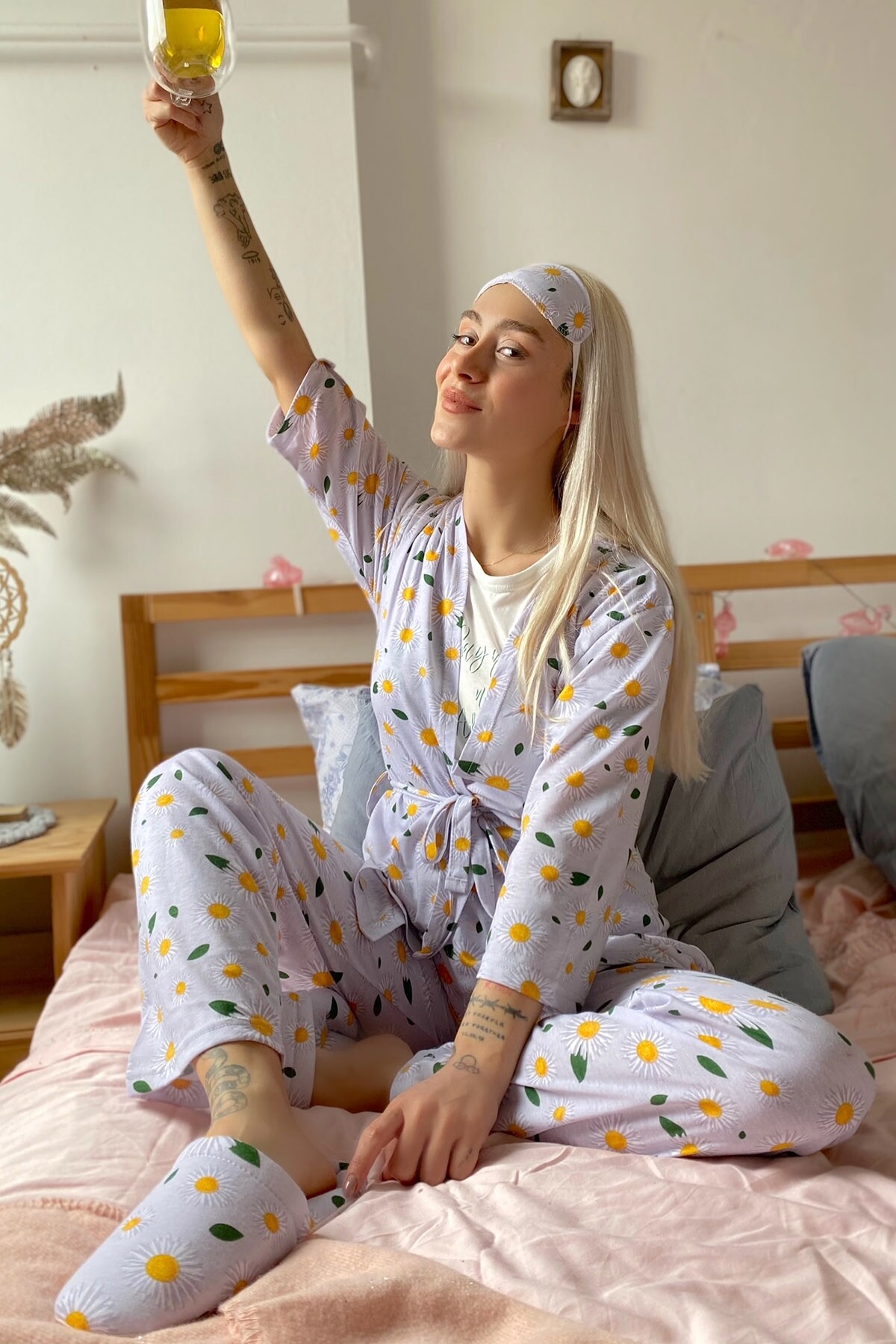 | Flower Baskılı Sabahlıklı Pijama Takımı | |