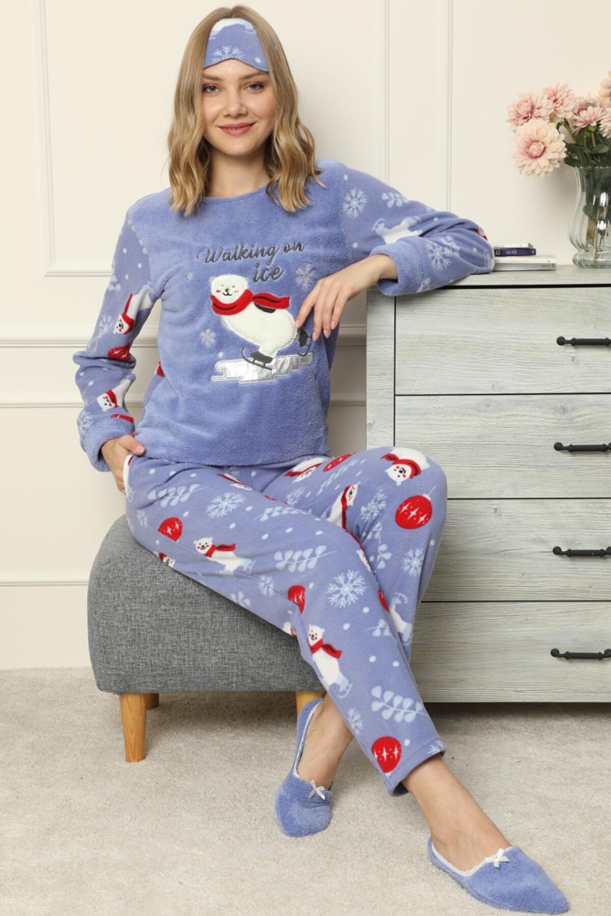 | Mavi Hello Winter Desenli Kadın Peluş Pijama Takımı | |