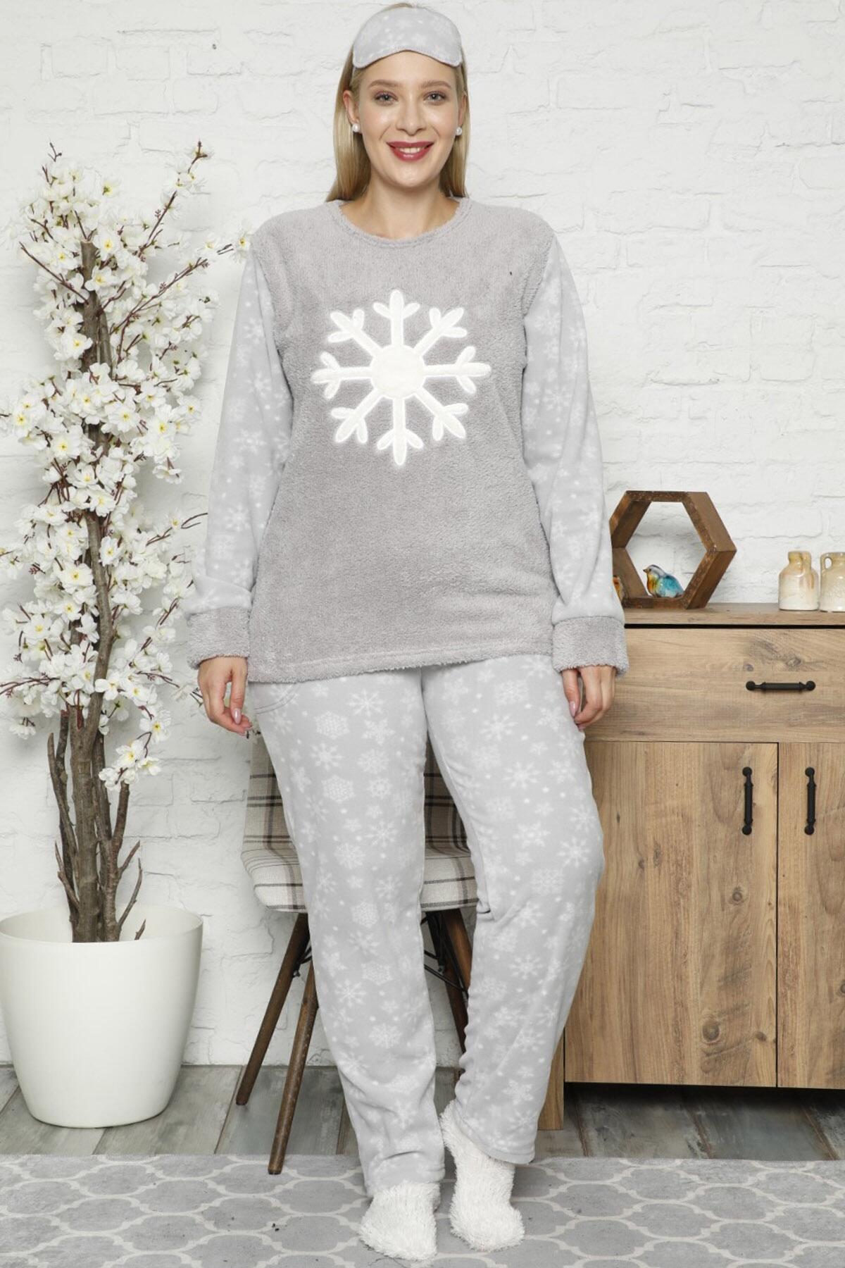 | Yılbaşı Desenli Kadın Peluş Pijama Takımı | |