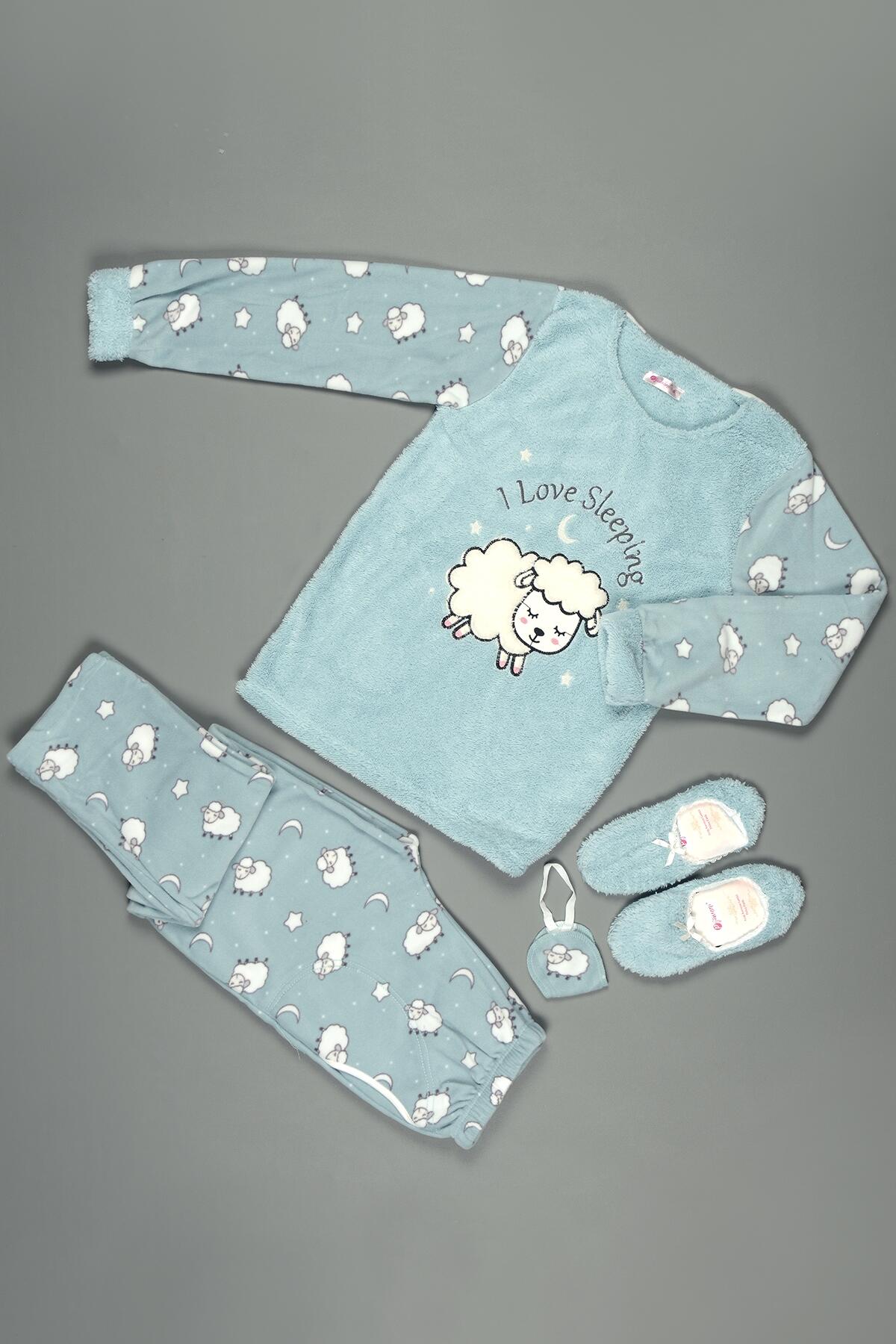 | Yeşil Sheep Desenli Kadın Peluş Pijama Takımı | |