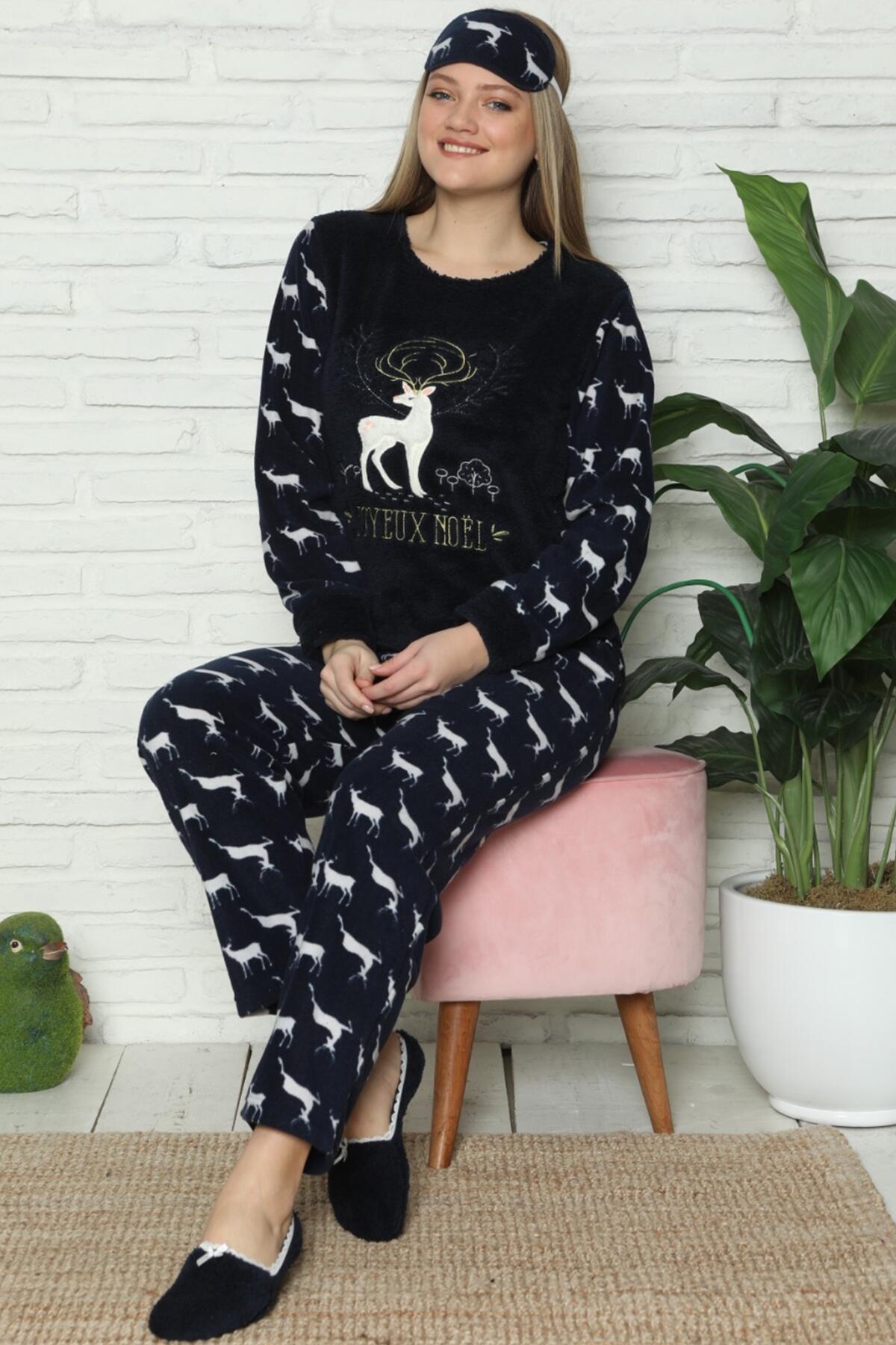 | Lacivert Hello Winter Desenli Kadın Peluş Pijama Takımı | |