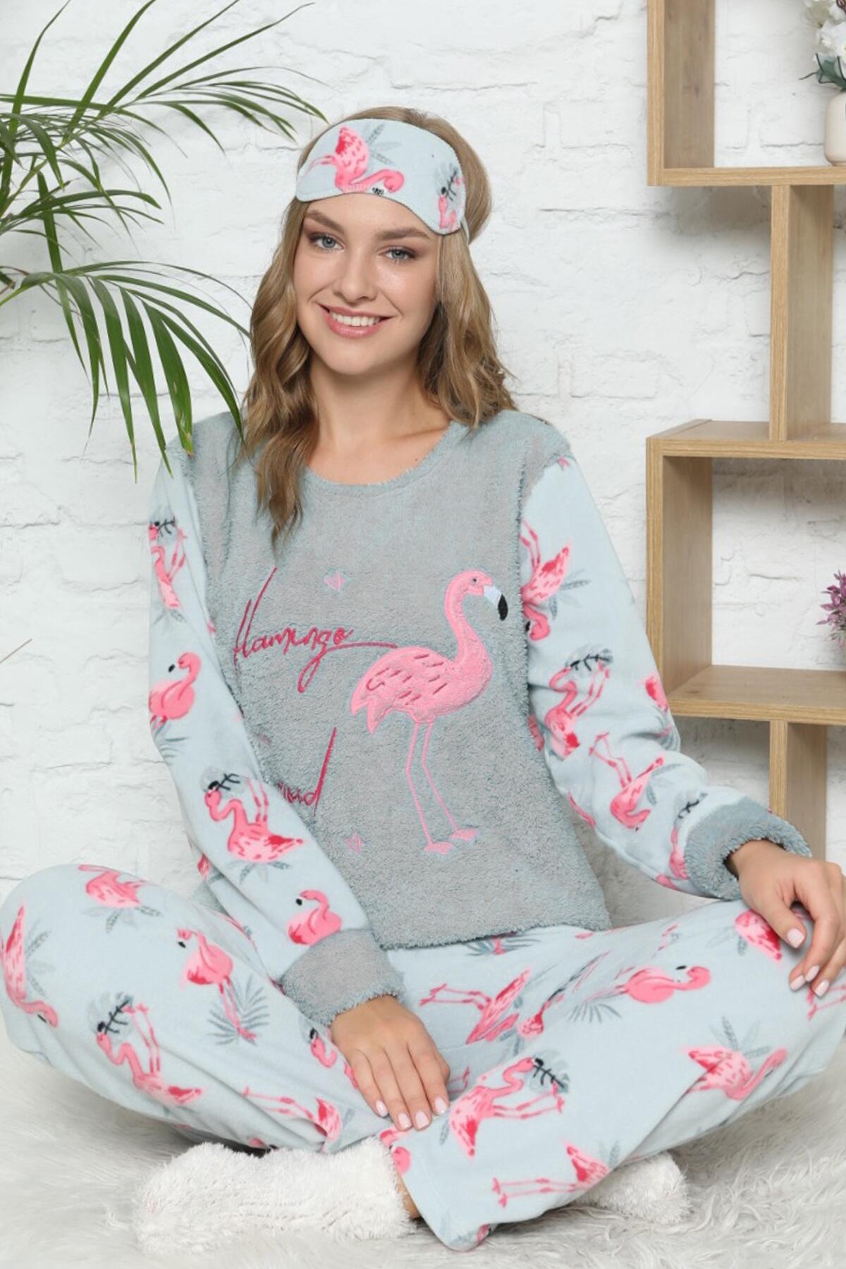 | Flamingo Desenli Kadın Peluş Pijama Takımı | |