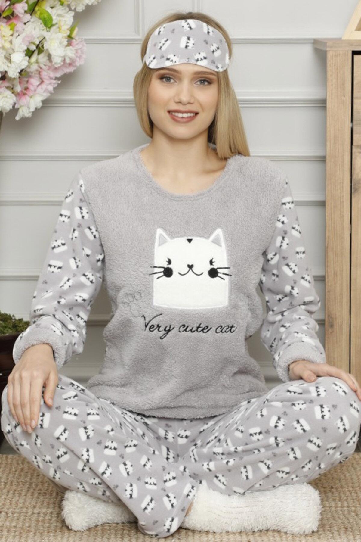 | Cute Cat Desenli Kadın Peluş Pijama Takımı | |
