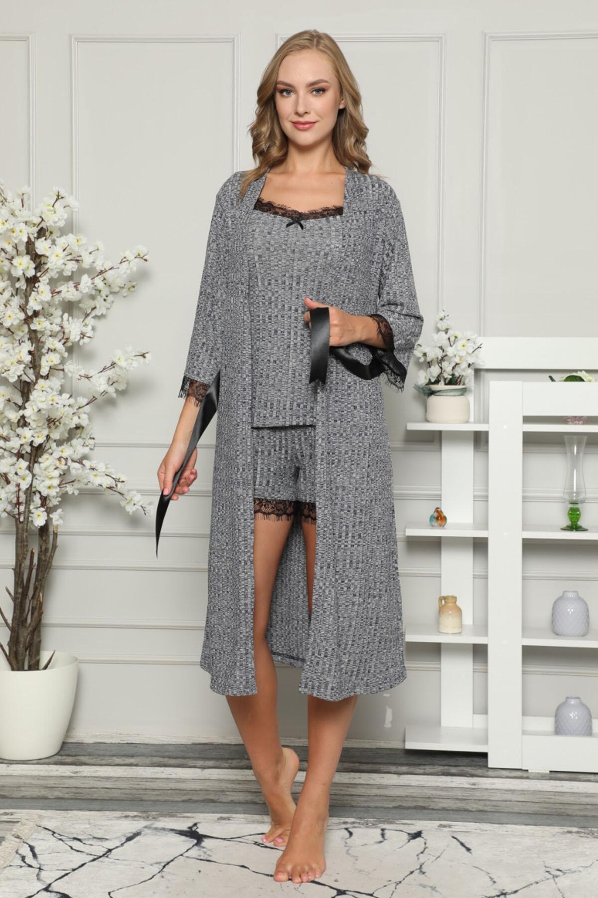 | Gri Dantel Detaylı Kaşkorse Sabahlıklı Kadın Pijama Takımı | |