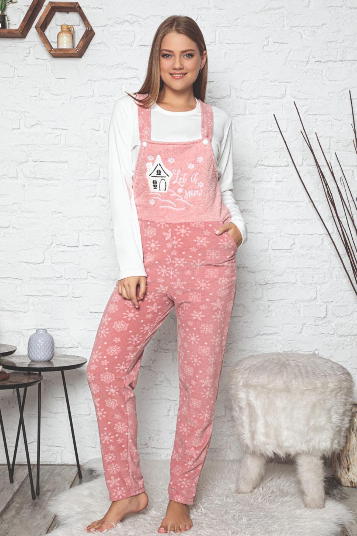 | Pudra Let it Snow Desenli Kadın Polar Peluş Tulum Pijama Takımı | |