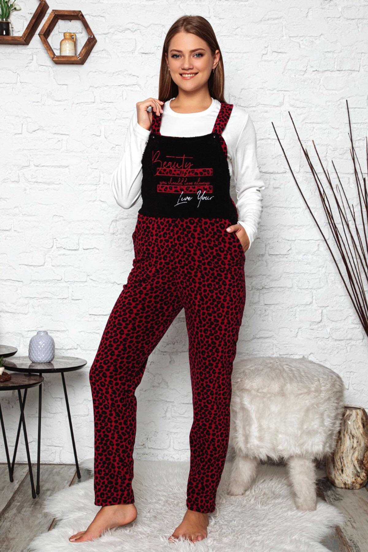 | Bordo Leopar Desenli Kadın Polar Peluş Tulum Pijama Takımı | |