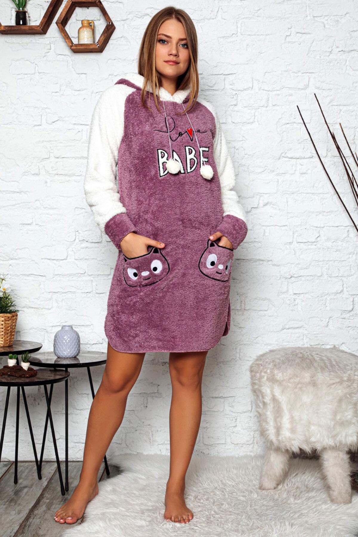| Love Babe Desenli Kapşonlu Peluş Polar Kadın Gecelik | |