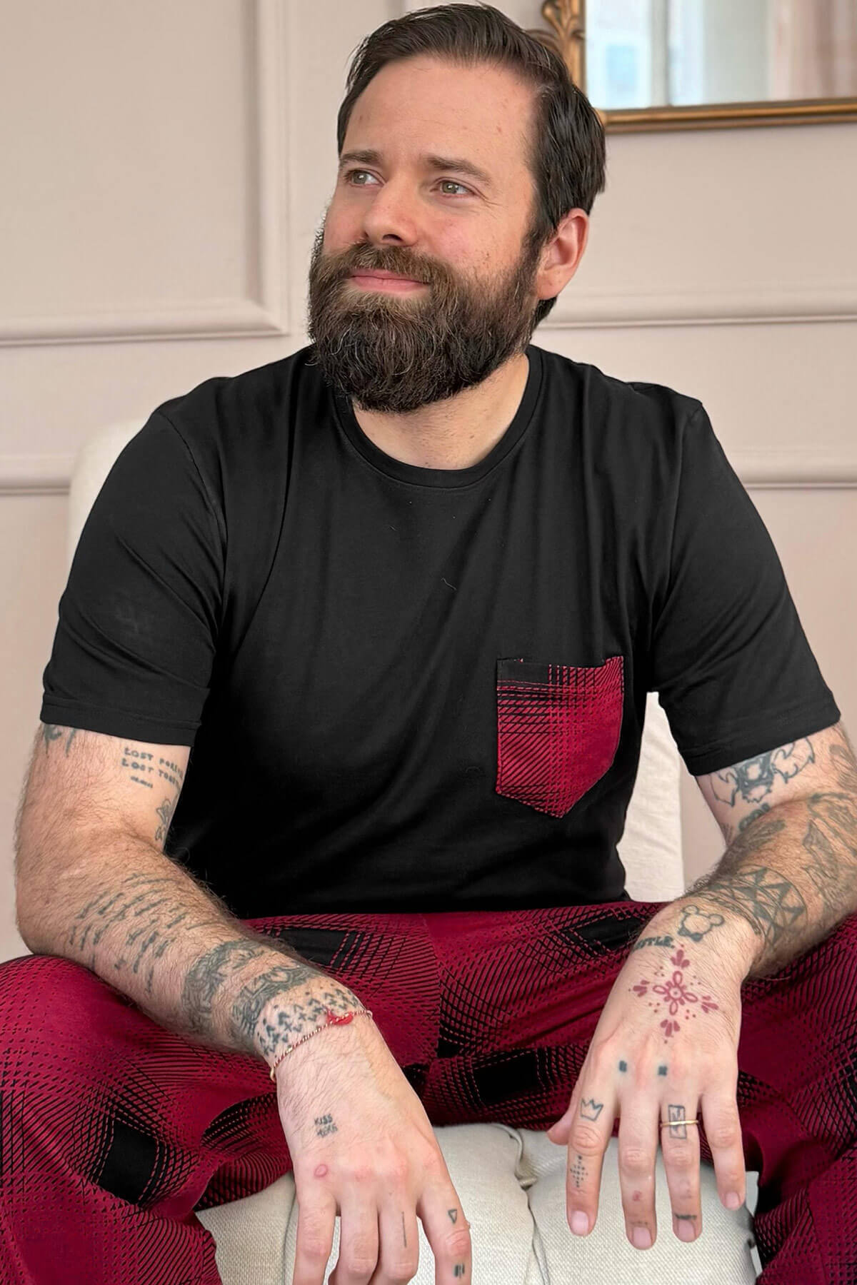 | Bordo Siyah Ekose Cep Detay Kısa Kollu Erkek Pijama Takımı | |