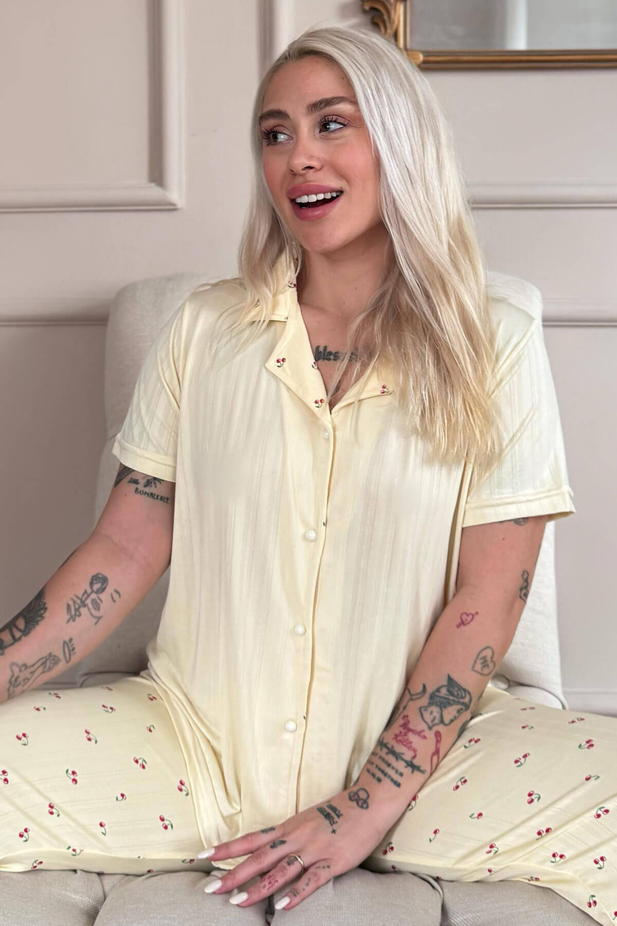 | Vanilya Cherry Blossom Desenli Önden Düğmeli Marlenka Pijama Takımı | |