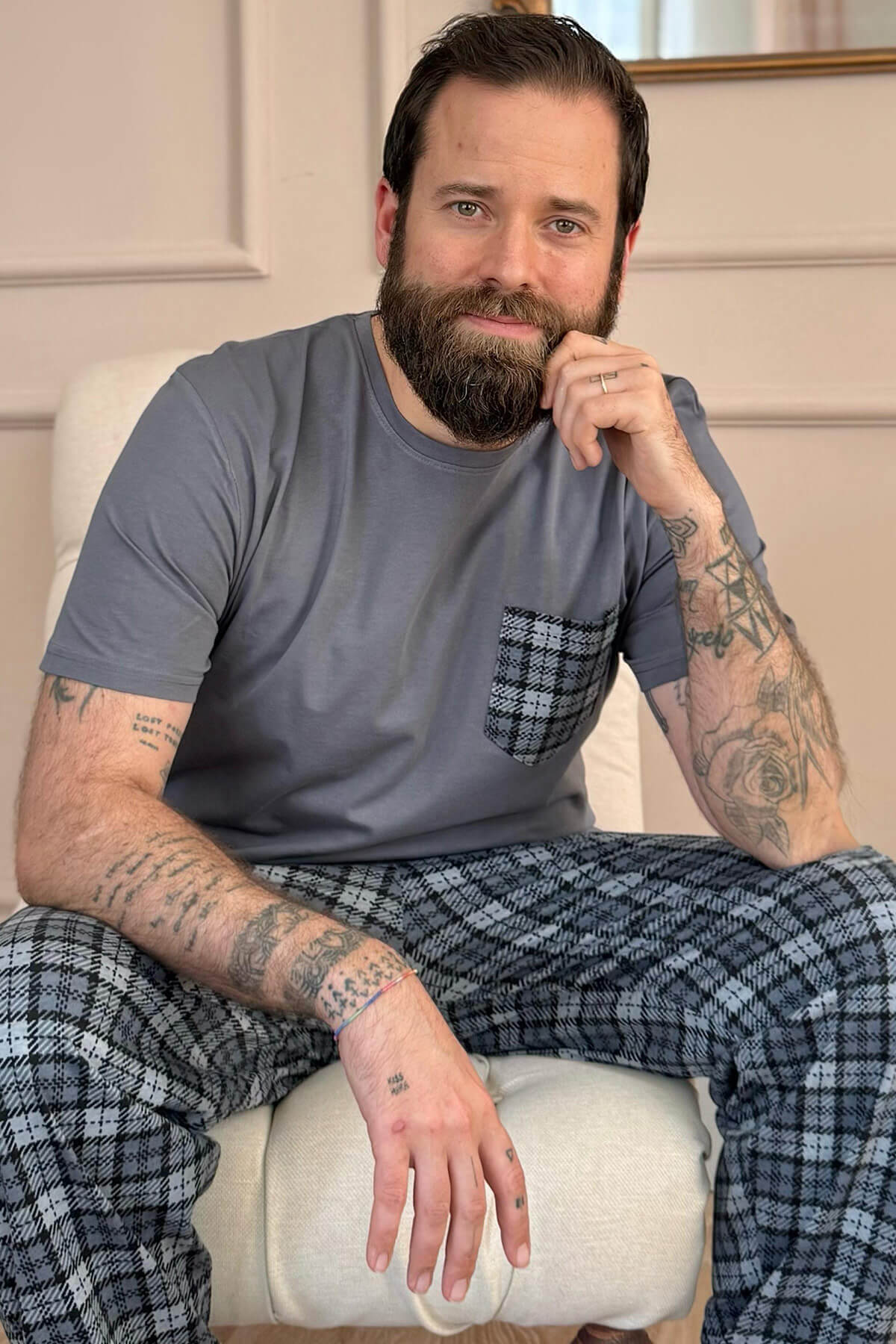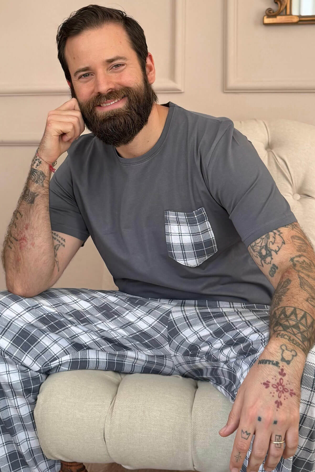 | Füme Gri Ekose Cep Detay Kısa Kollu Erkek Pijama Takımı | |