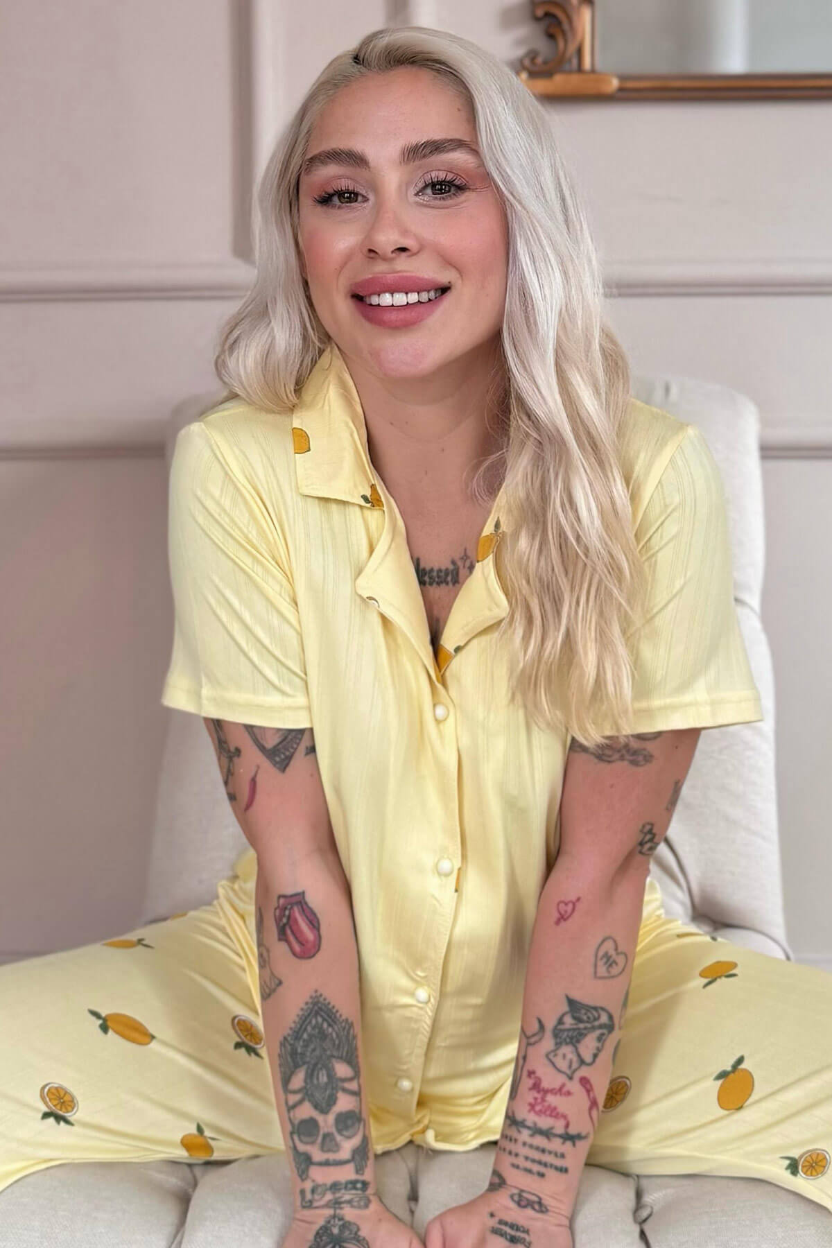 | Sarı Citrus Charm Desenli Önden Düğmeli Marlenka Pijama Takımı | |
