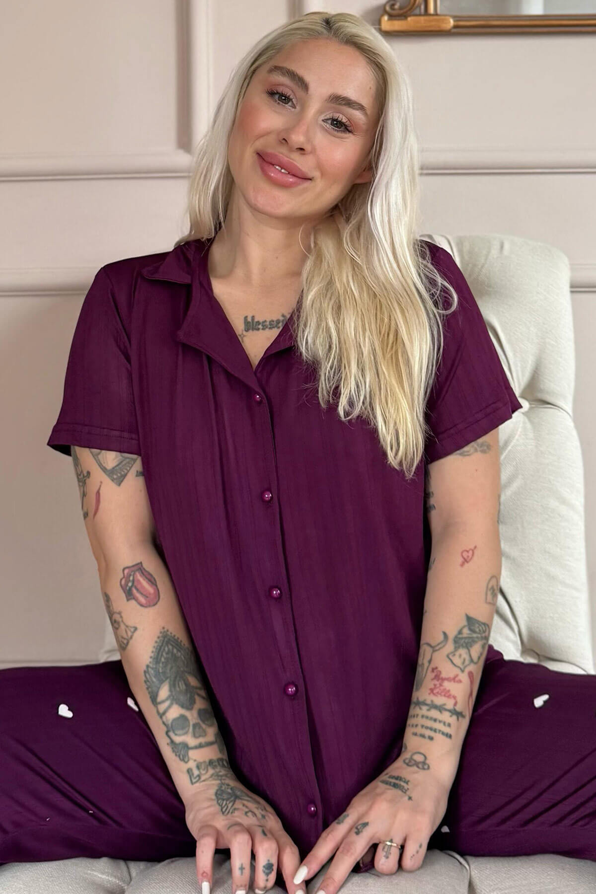 | Mürdüm Amour Desenli Önden Düğmeli Marlenka Pijama Takımı | |