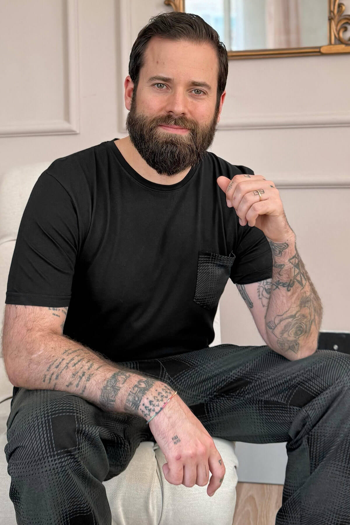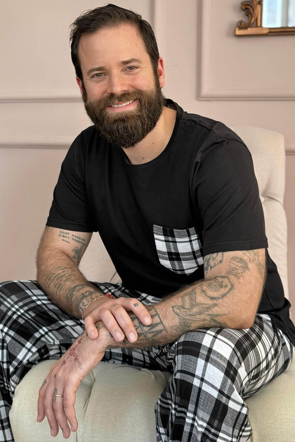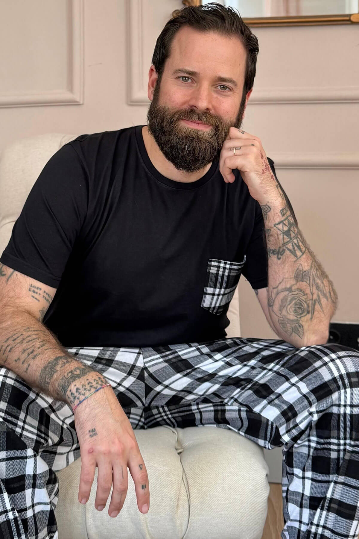 | Siyah Füme Ekose Cep Detay Kısa Kollu Erkek Pijama Takımı | |